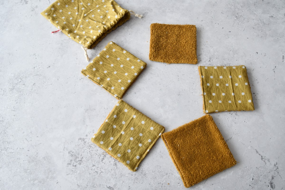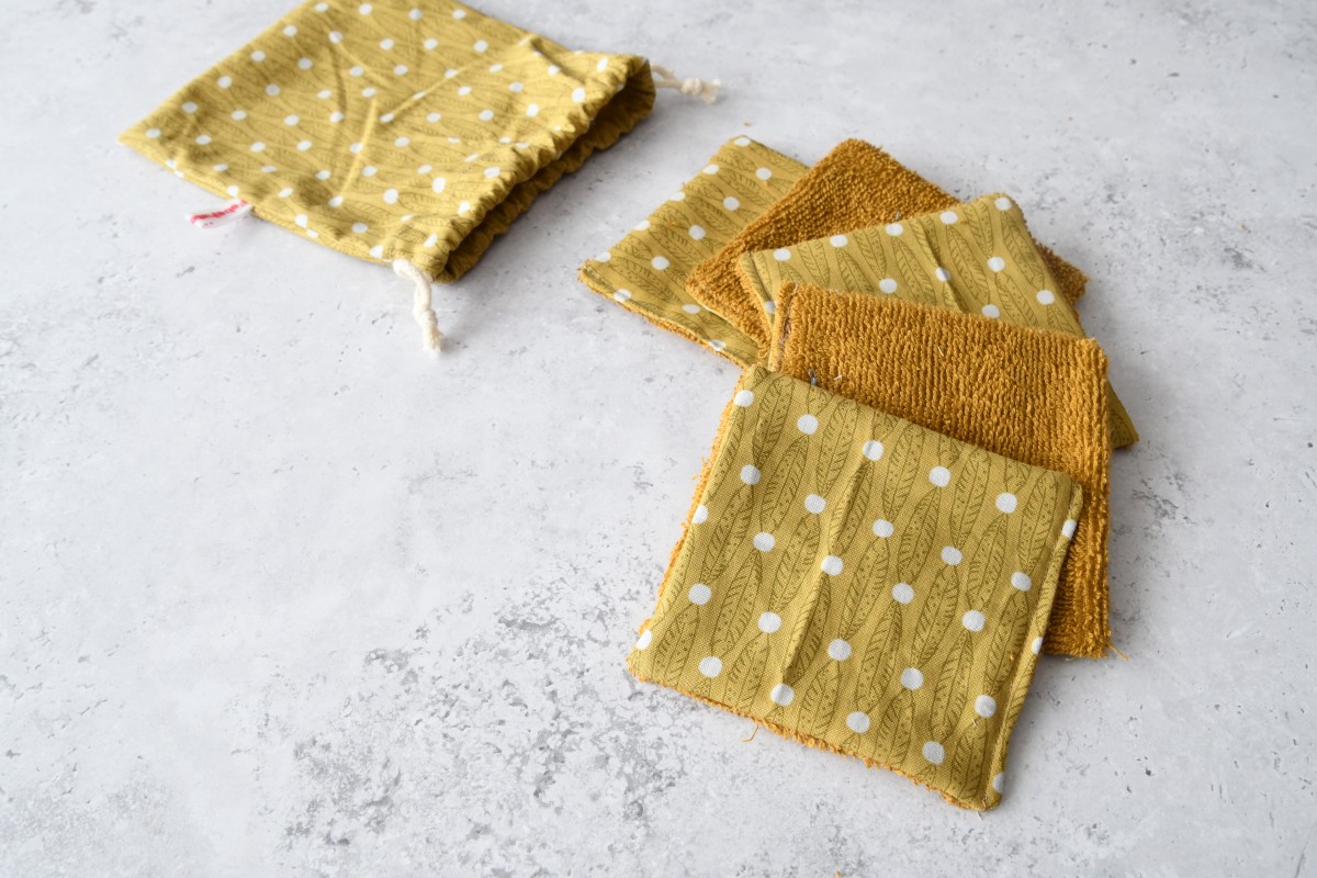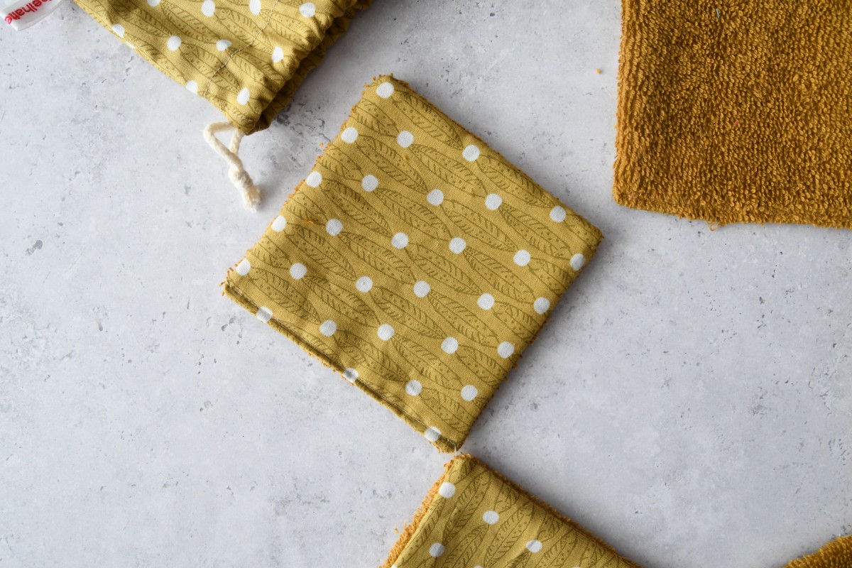 Mobile Preview: Kosmetikpads "Federn auf senfgelb"