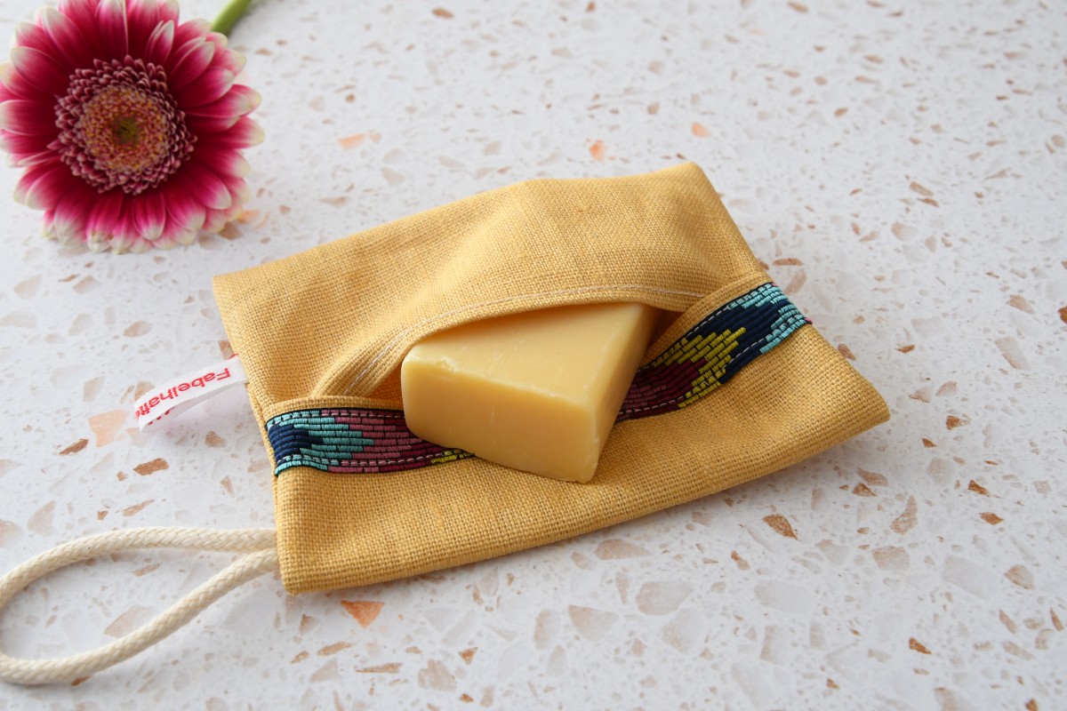 Mobile Preview: Seifenbeutel "gelb mit grafischen Muster"