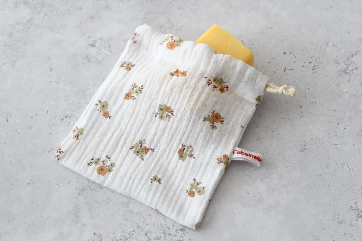 Das Seifensäckchen aus Baumwoll Musselin bietet die perfekte Aufbewahrung für deine feste Seife. Es schützt die feste Seife nicht nur unter der Dusche, sondern nimmt auch kleine Seifenreste auf, die sonst durch die Finger flutschen und im Abfluss verloren gehen. So kannst du deine feste Seife bis zum letzten, kleinsten Rest nutzen. Der Stoff des Seifensäckchens ist angenehm weich, saugfähig und besonders langlebig.