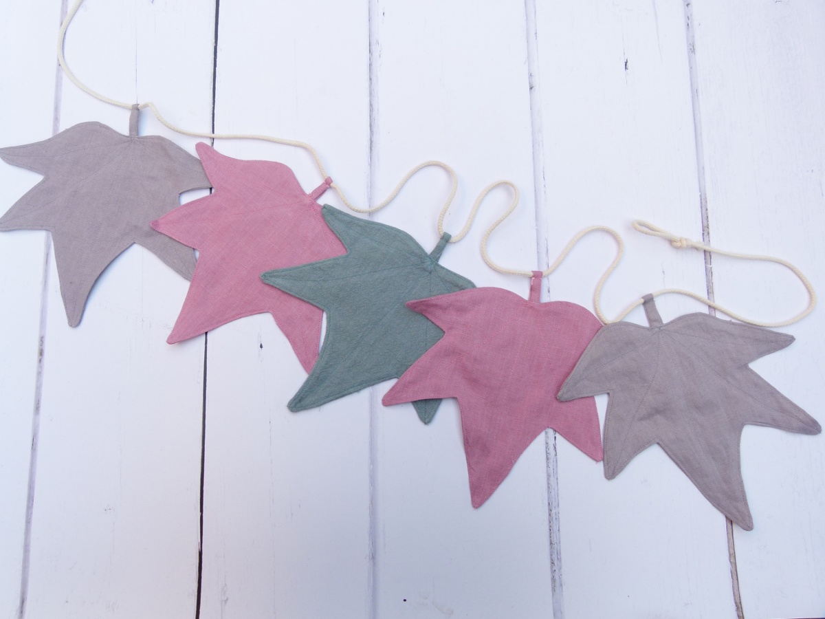 Mobile Preview: Girlande "Ahornblatt rosa-grau-türkis"