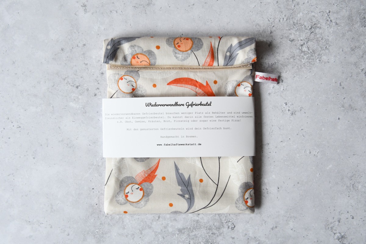 Gefrierbeutel wiederverwendbar, zero waste - "Blumengesichter"