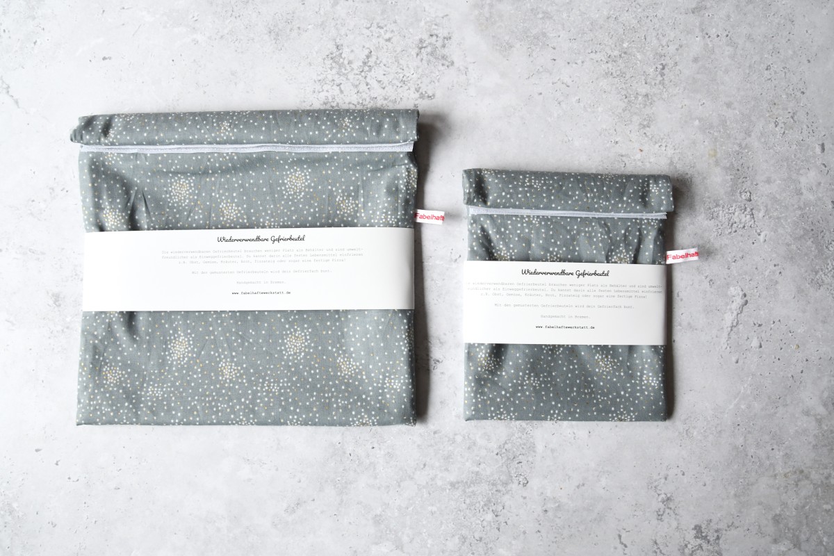 Gefrierbeutel wiederverwendbar, zero waste - "Glitter auf grau"