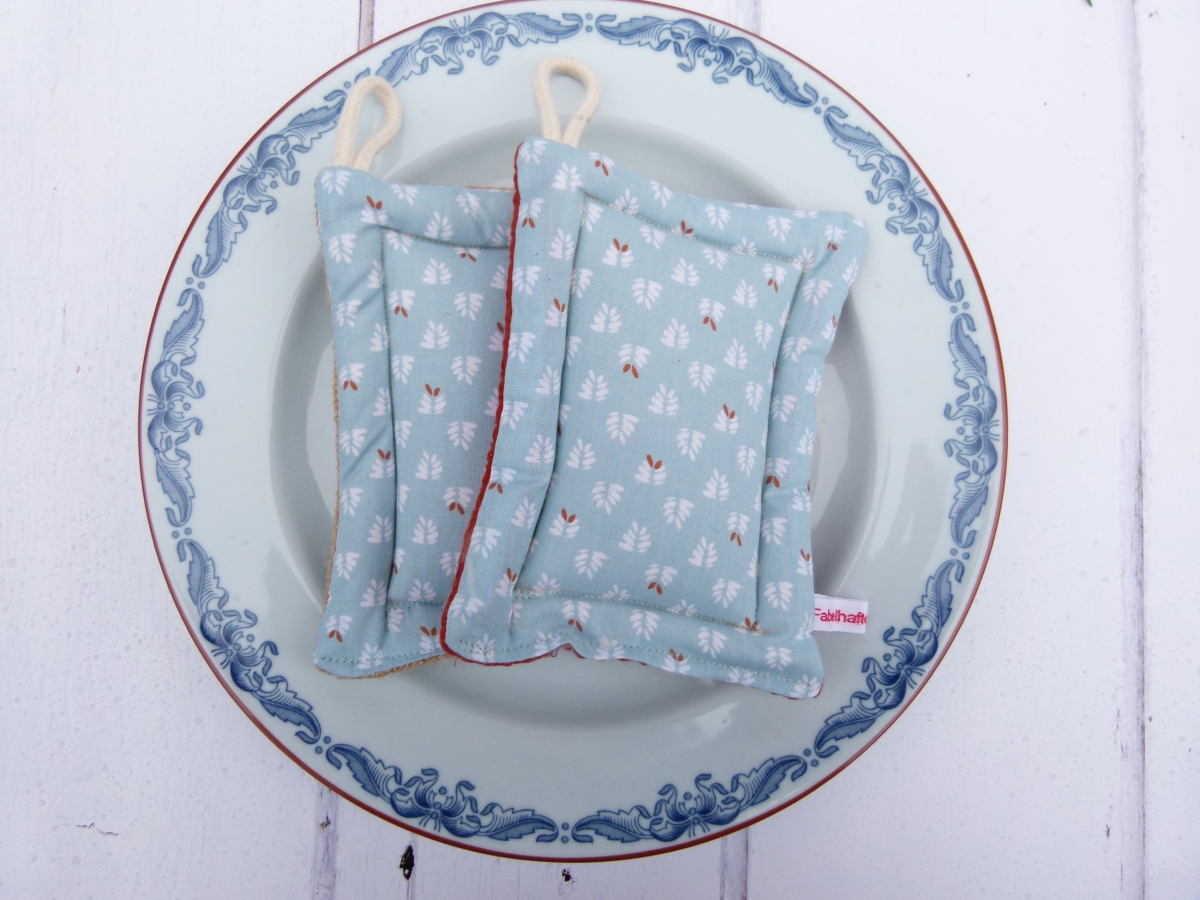 Spülschwamm, Scheuerschwamm,  2er Set - "Blätter auf blau"