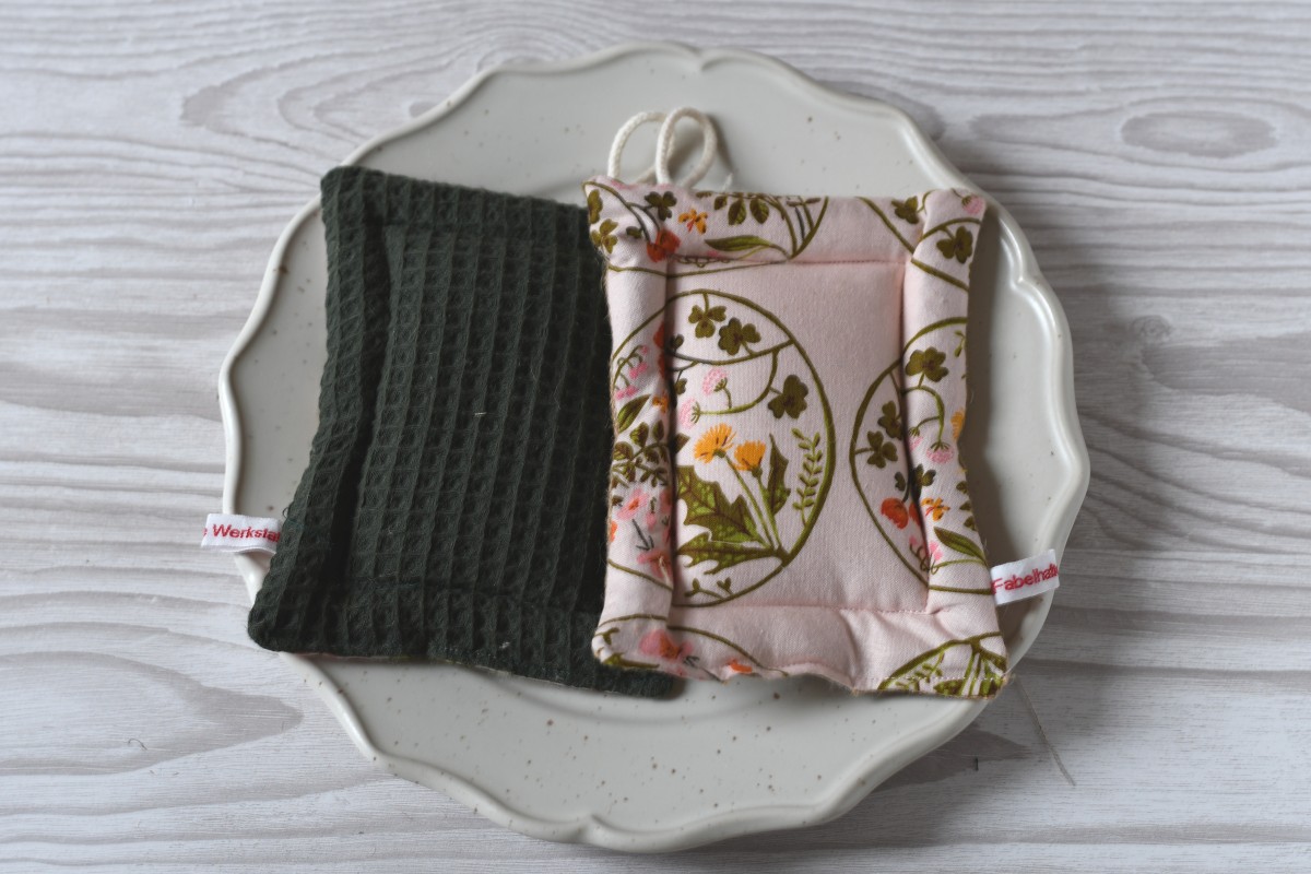 Spülschwamm, Scheuerschwamm, 2er Set - "Blumenkränze auf rosa"