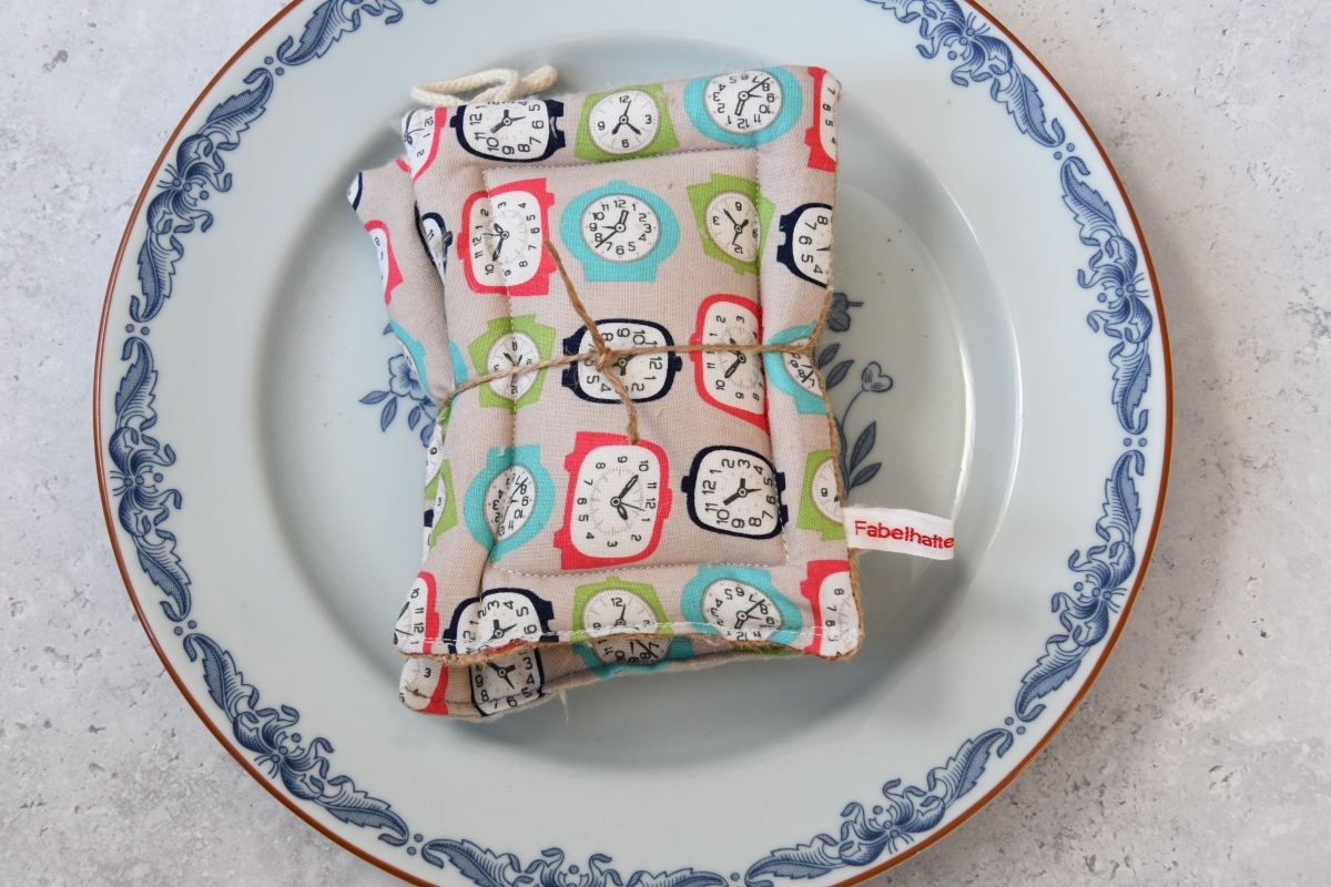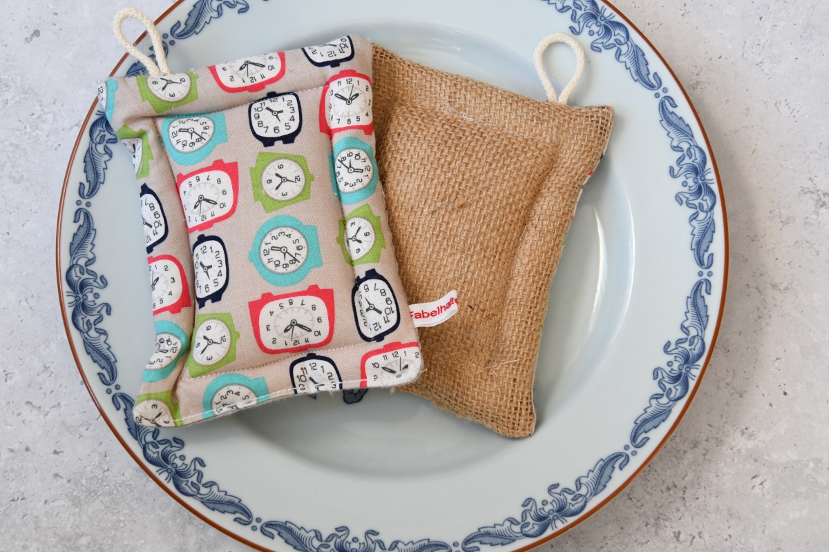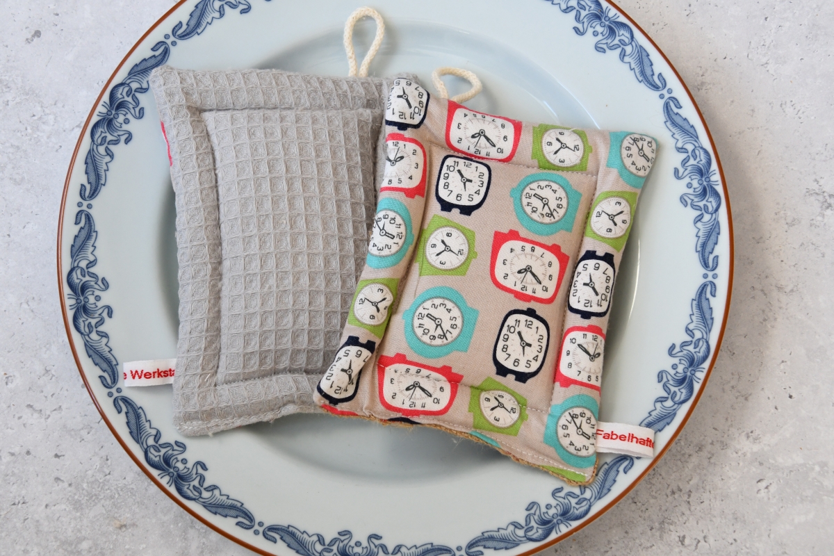 Spülschwamm, Scheuerschwamm, 2er Set - "Bunte Wecker auf grau"