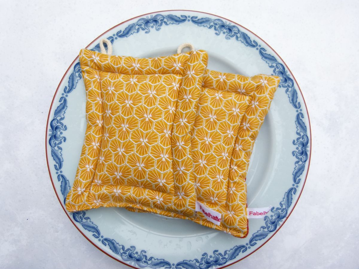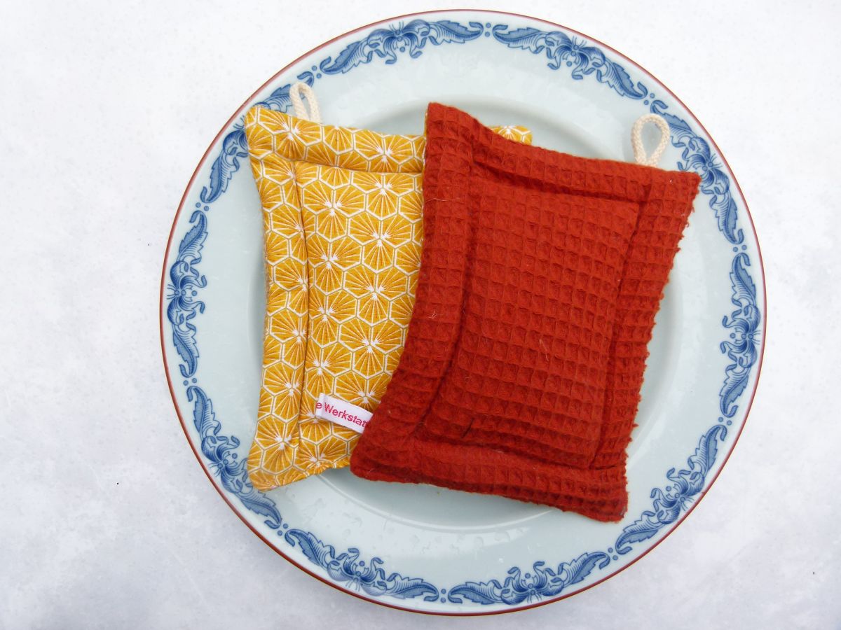 Spülschwamm, Scheuerschwamm, 2er Set - "Muster auf senfgelb"