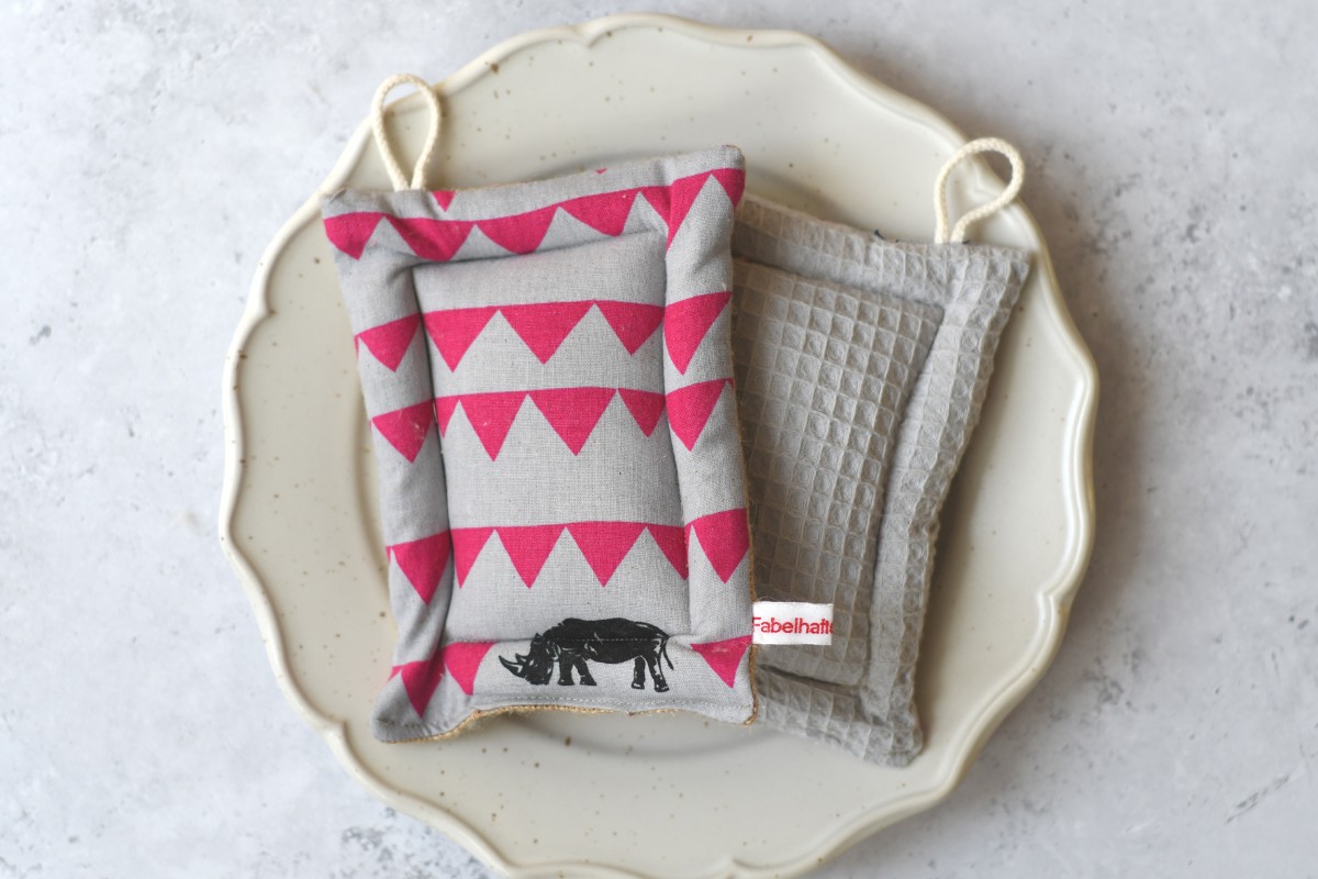 Spülschwamm, Scheuerschwamm,  2er Set - "Nashörner auf grau"