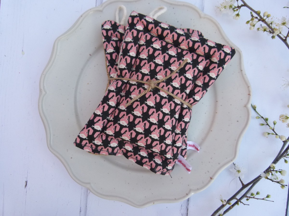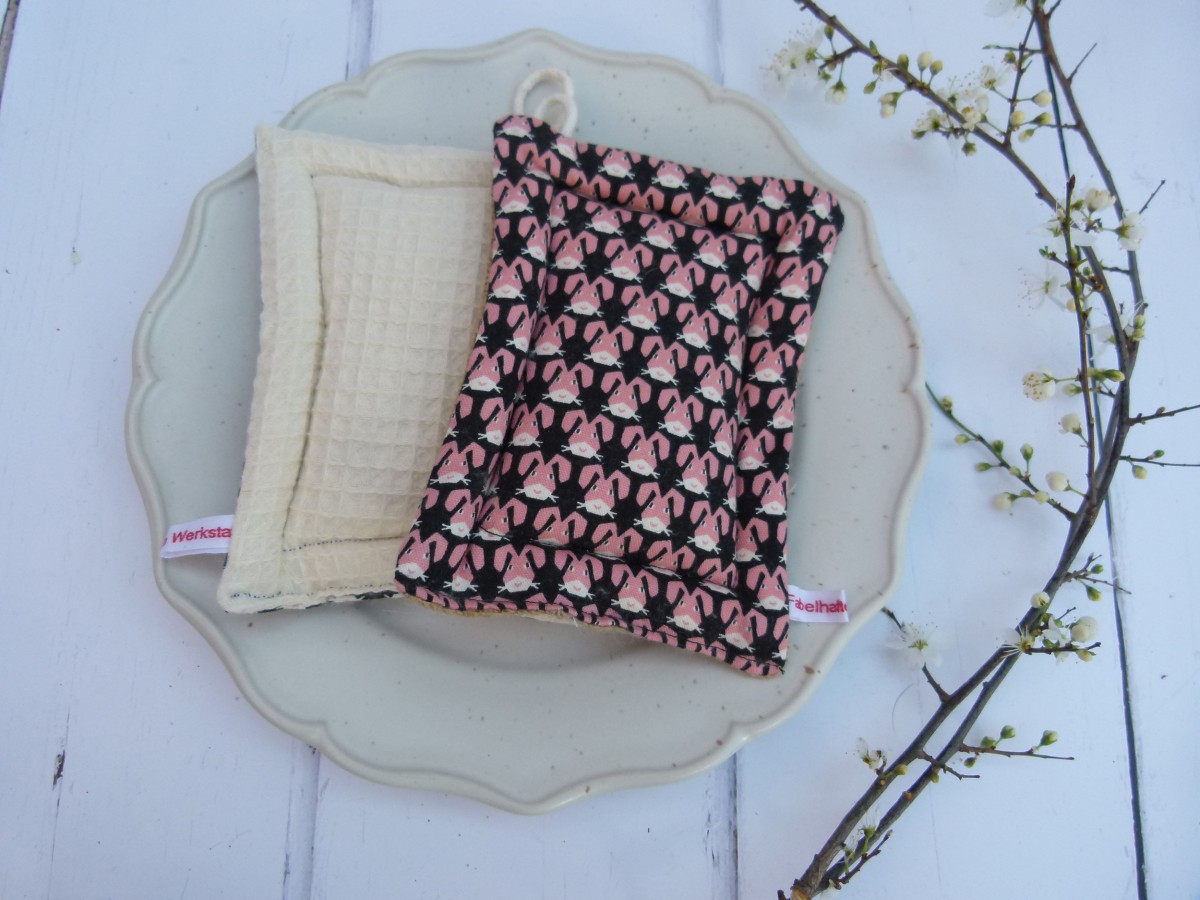 Spülschwamm, Scheuerschwamm, 2er Set - "Osterhasen auf schwarz"