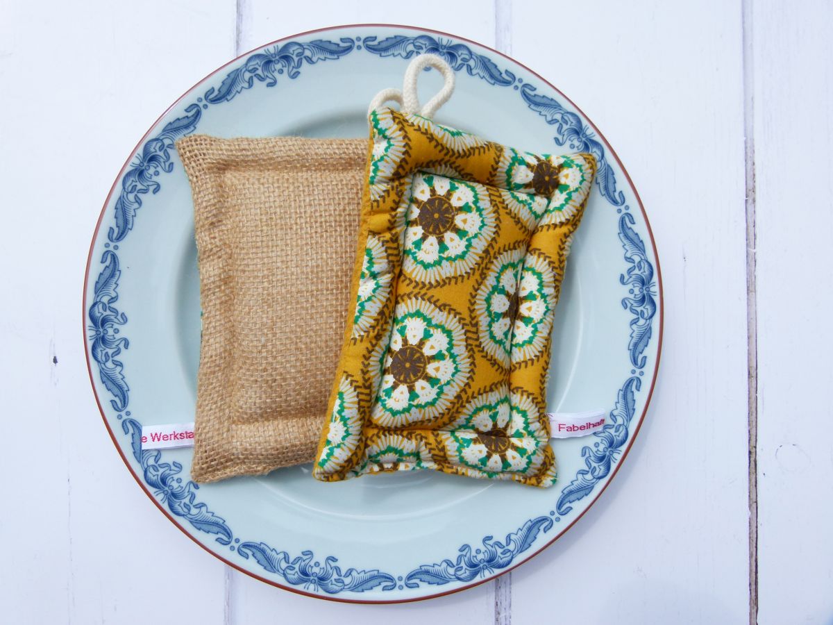 Jedes nachhaltige Spülschwamm-Set wird in liebevoller Handarbeit gefertigt. Leichte Musterabweichungen machen jedes Set zu einem Unikat – ideal als nützliche Geschenke oder praktische Geschenkideen.