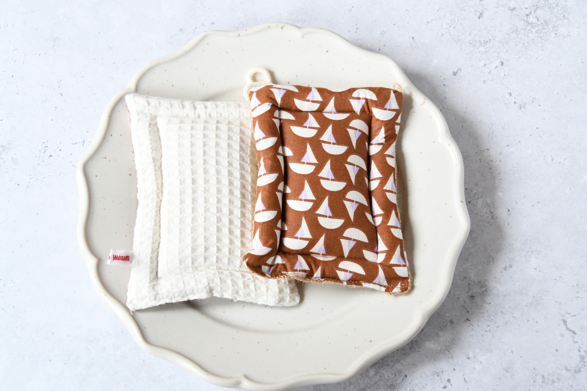 Preview: Spülschwamm, Scheuerschwamm, 2er Set - "Segelboote auf braun I"