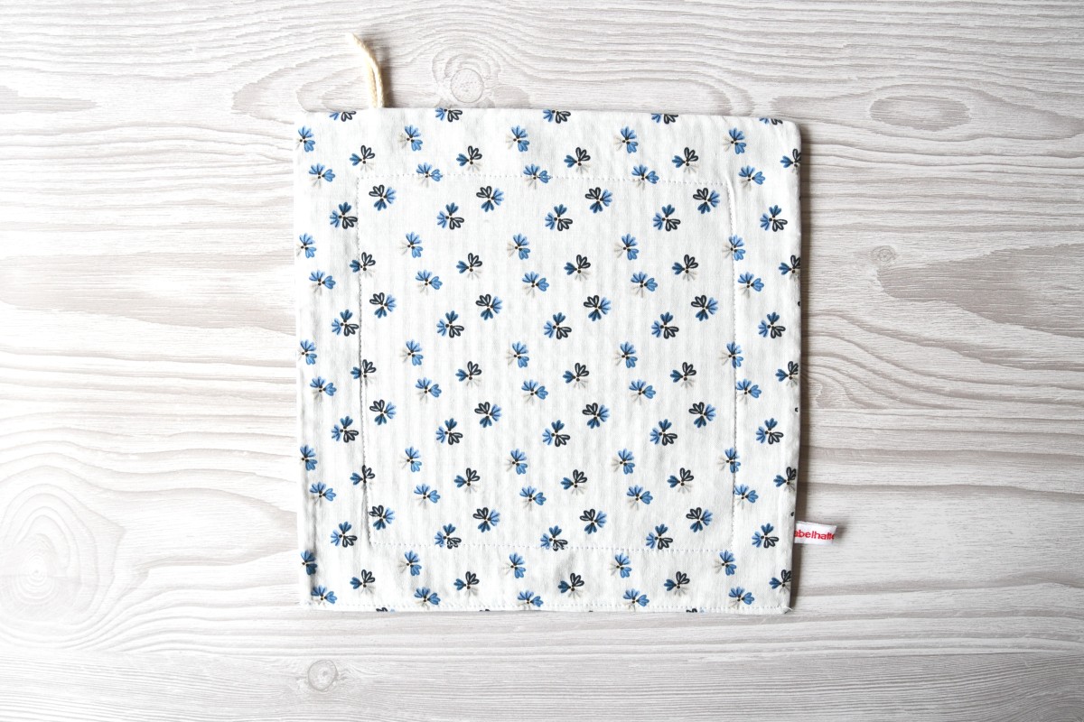 Preview: Spüllappen, Reinigungstuch - "Blaue Blumen auf weiß"