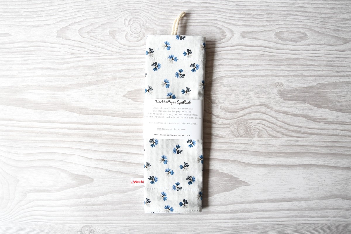 Spüllappen, Reinigungstuch - "Blaue Blumen auf weiß"