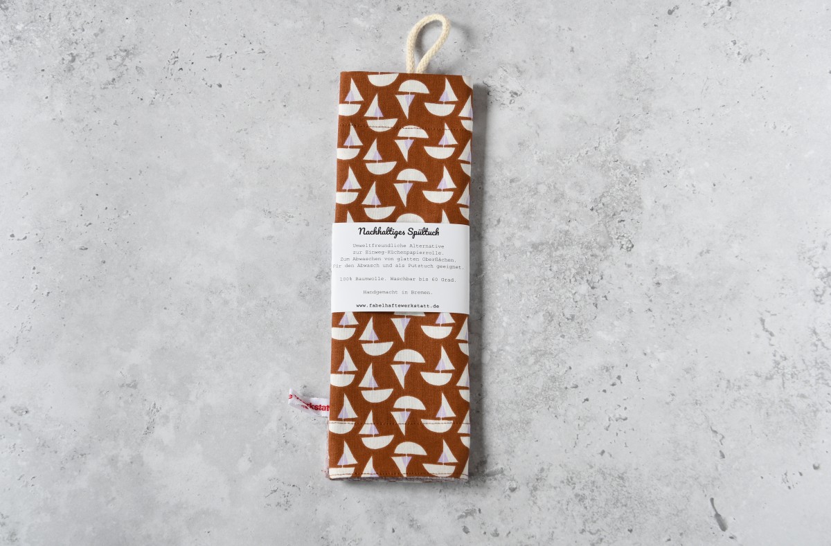 Preview: Spüllappen, Putztuch - "Segelboote auf braun"