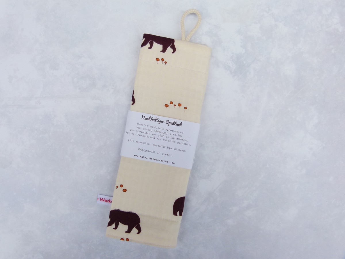 Spüllappen, Putztuch - "Braune Bären auf creme"