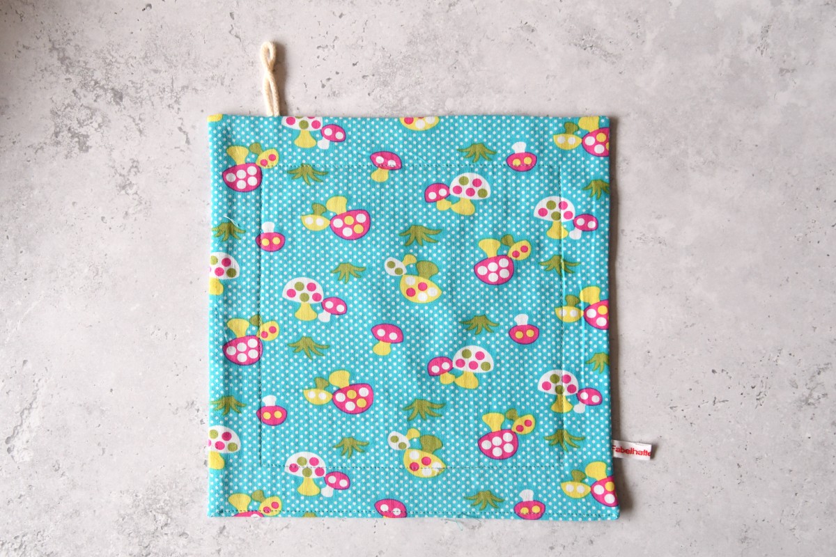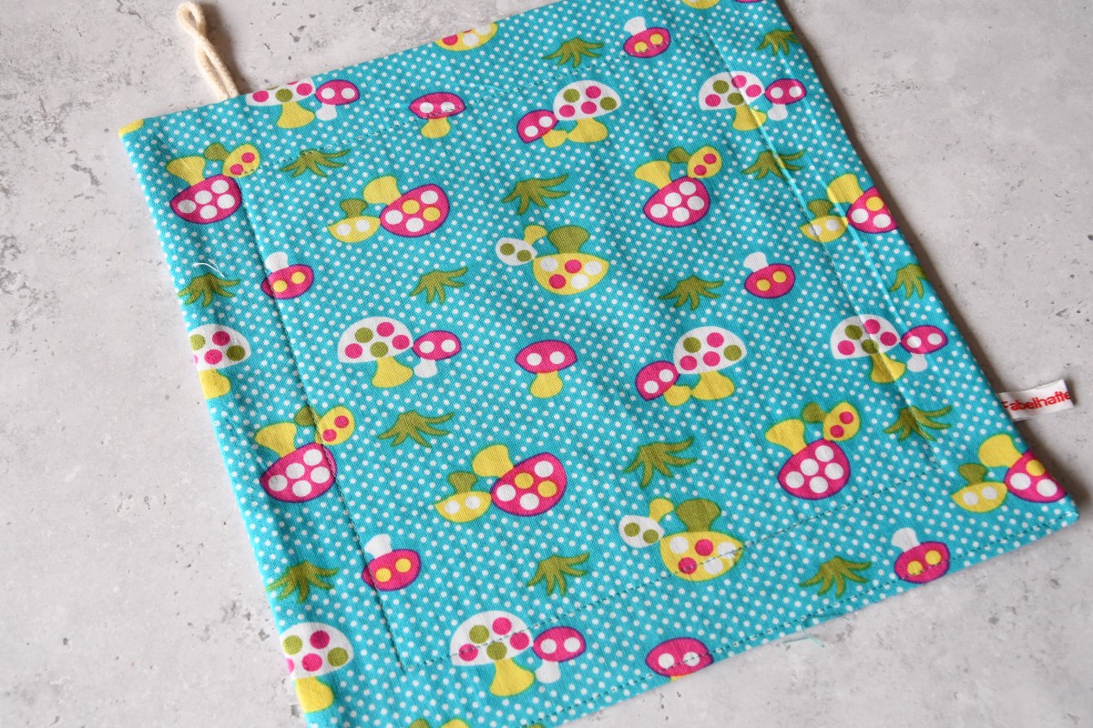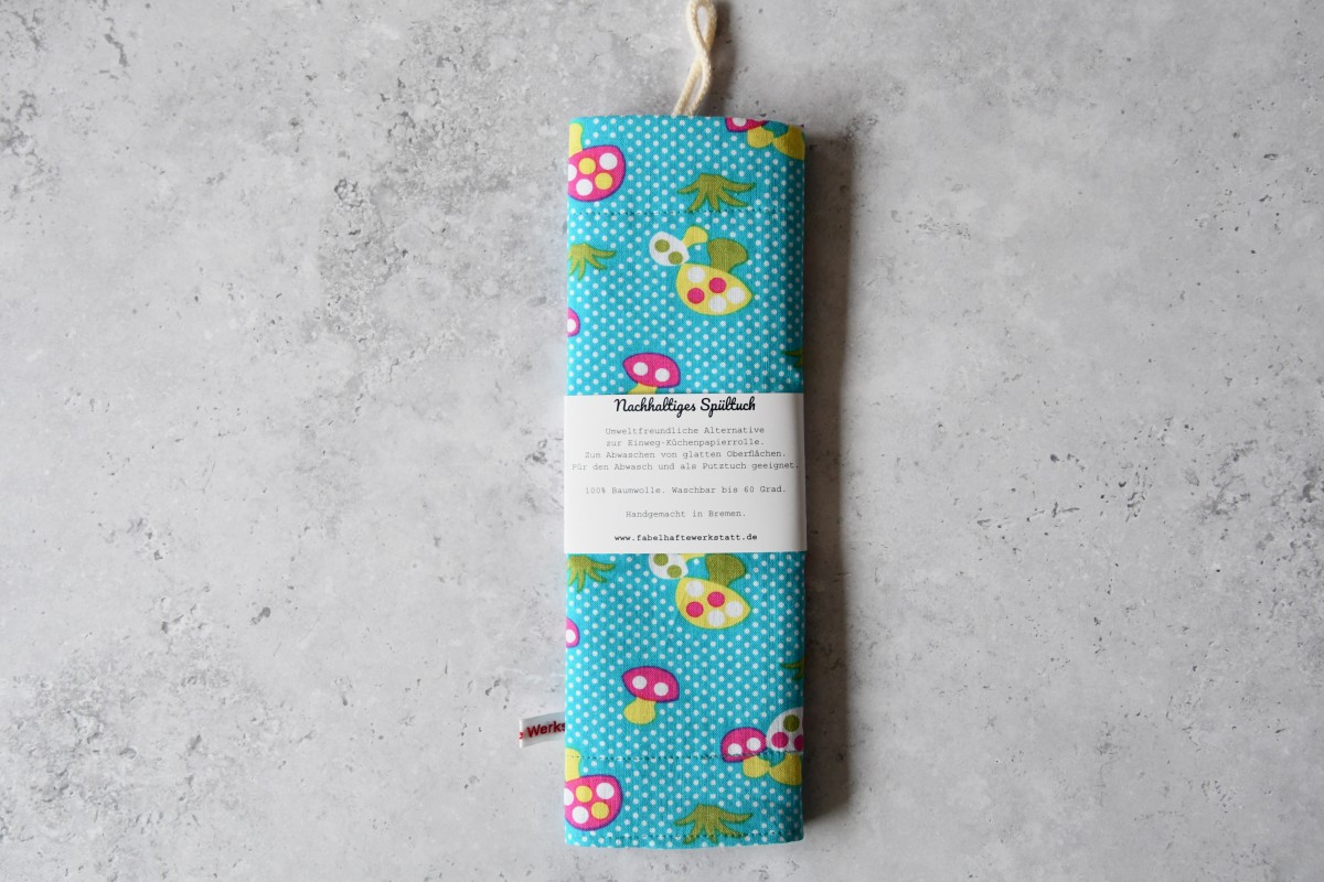 Spüllappen, Putztuch - "Bunte Fliegenpilze auf türkis"