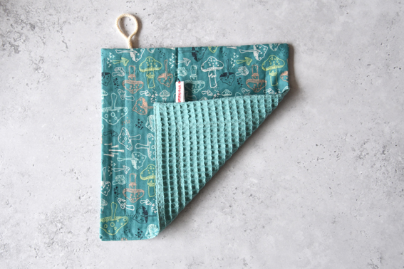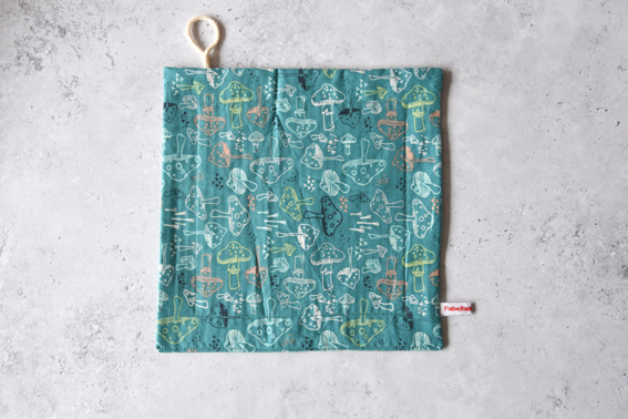Mobile Preview: Putztuch, Spültuch aus Baumwolle - "Fliegenpilze auf blaugrün"