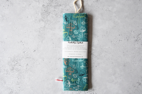Putztuch, Spültuch aus Baumwolle - "Fliegenpilze auf blaugrün"