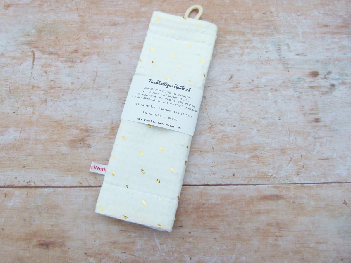 Spültuch, Putztuch - "Goldene Punkte auf cremeweiß"