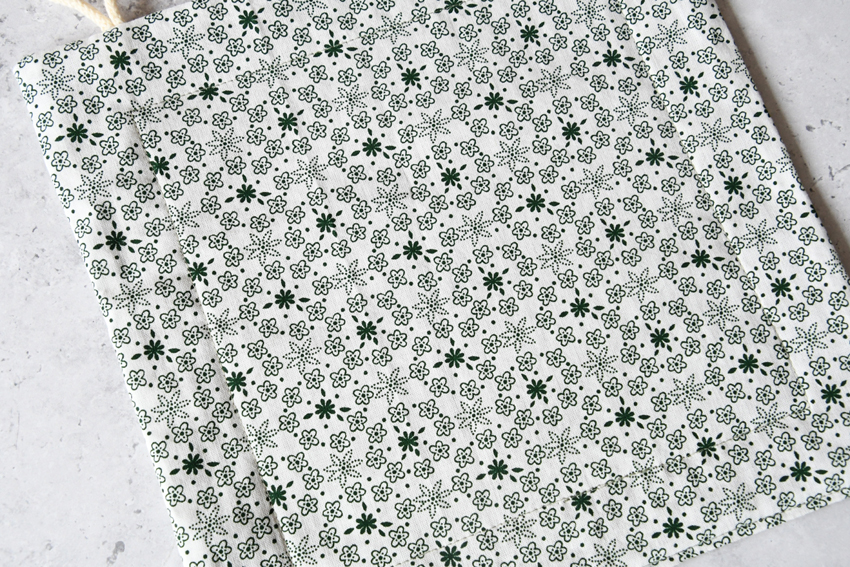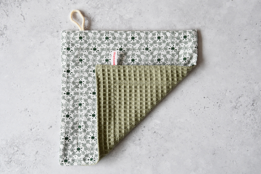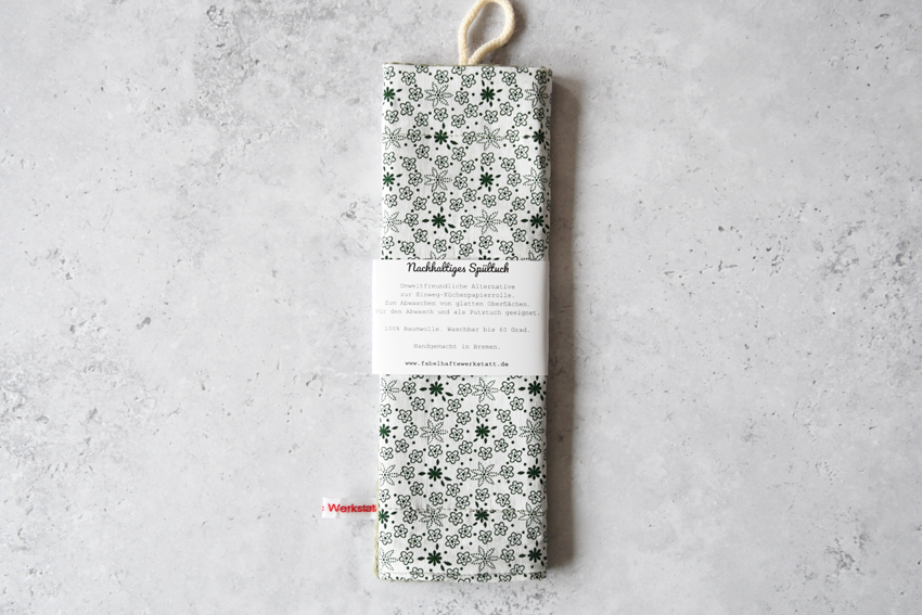Preview: Spüllappen, Reinigungstuch - "Grünes Blumenmuster auf weiß"