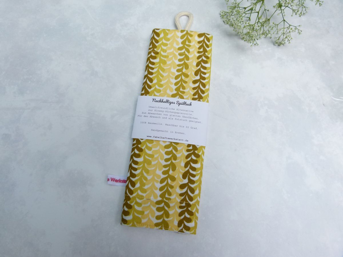 Putztuch, Spültuch aus Baumwolle - "Grüngelbe Blumenranken"