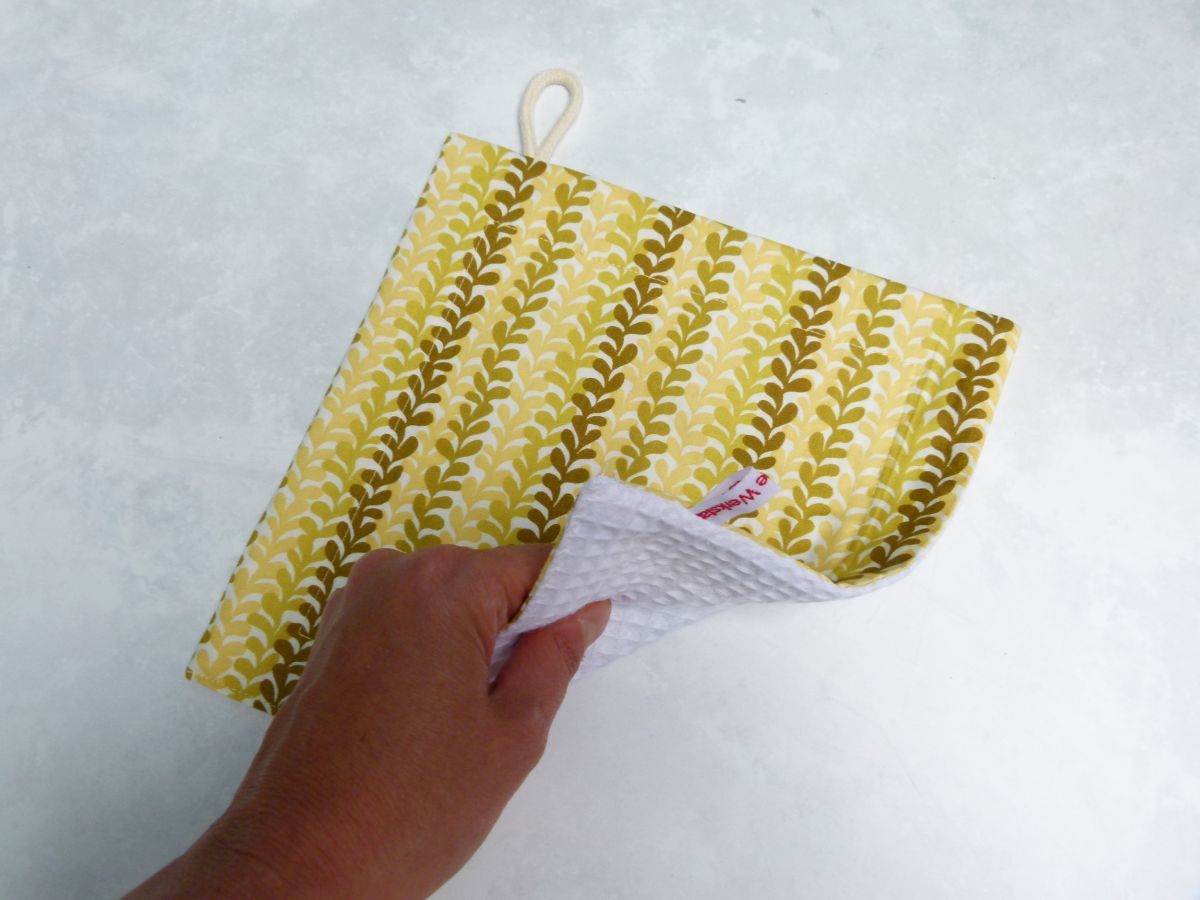 Mobile Preview: Putztuch, Spültuch aus Baumwolle - "Grüngelbe Blumenranken"