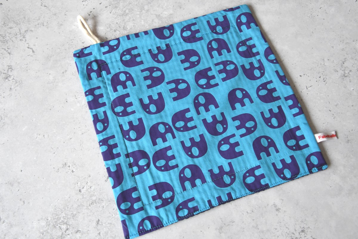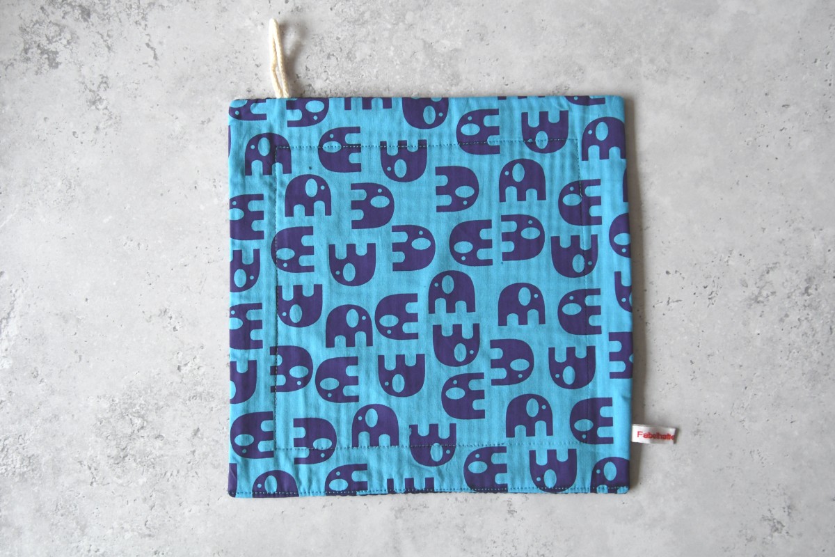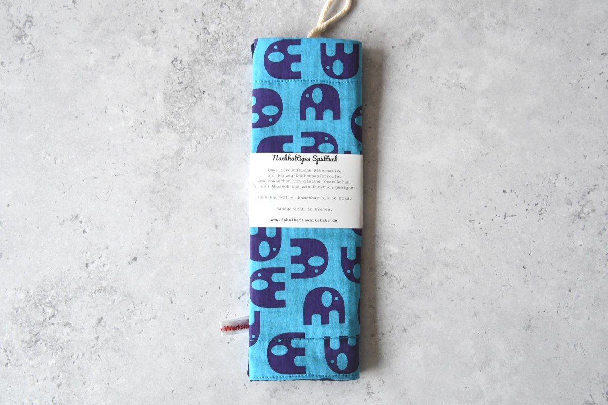 Putztuch, Spültuch aus Baumwolle - "Lila Elefanten auf blau"