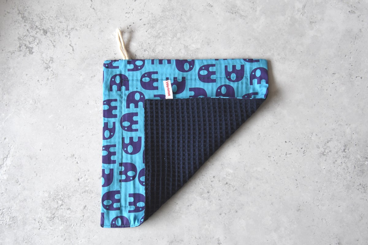 Mobile Preview: Putztuch, Spültuch aus Baumwolle - "Lila Elefanten auf blau"