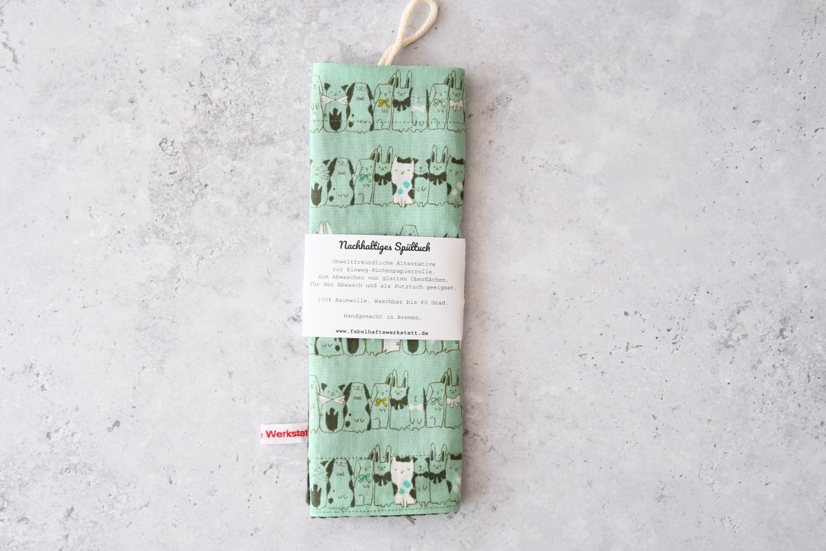 Spüllappen, Putztuch - "Lustige Tiere auf mint"