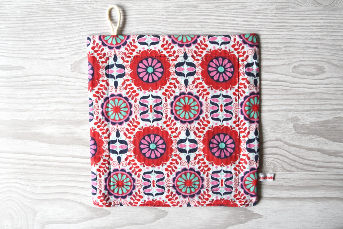 Mobile Preview: Putztuch, Spültuch aus Baumwolle - "Rote Retroblumen"