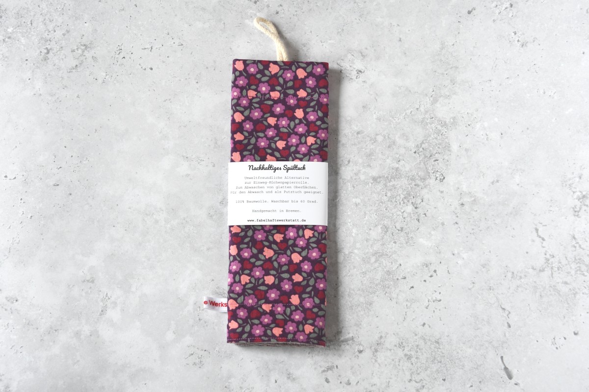 Putztuch, Spültuch aus Baumwolle - "Streublumen auf lila"