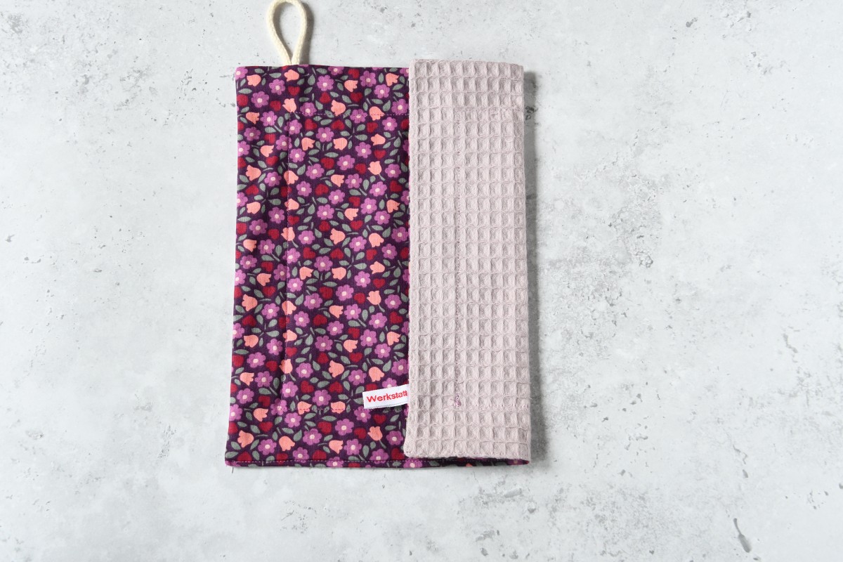Preview: Putztuch, Spültuch aus Baumwolle - "Streublumen auf lila"