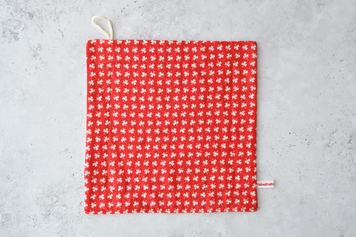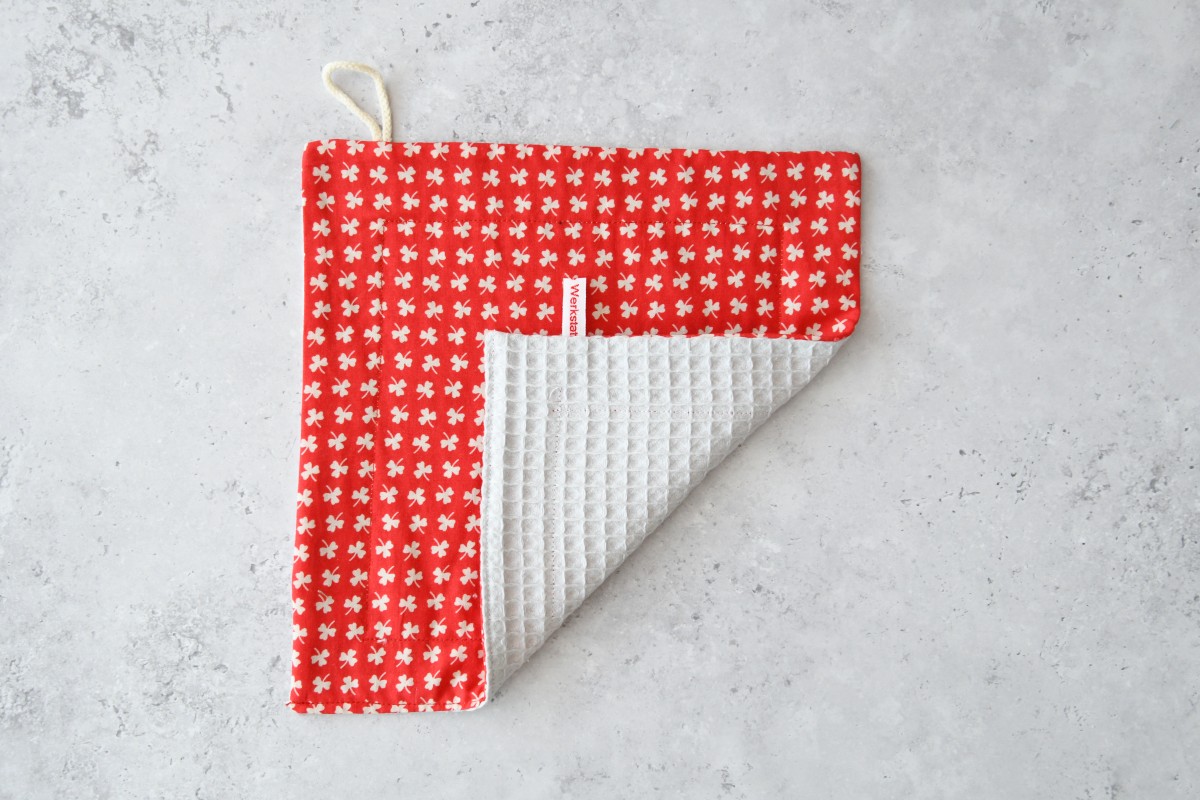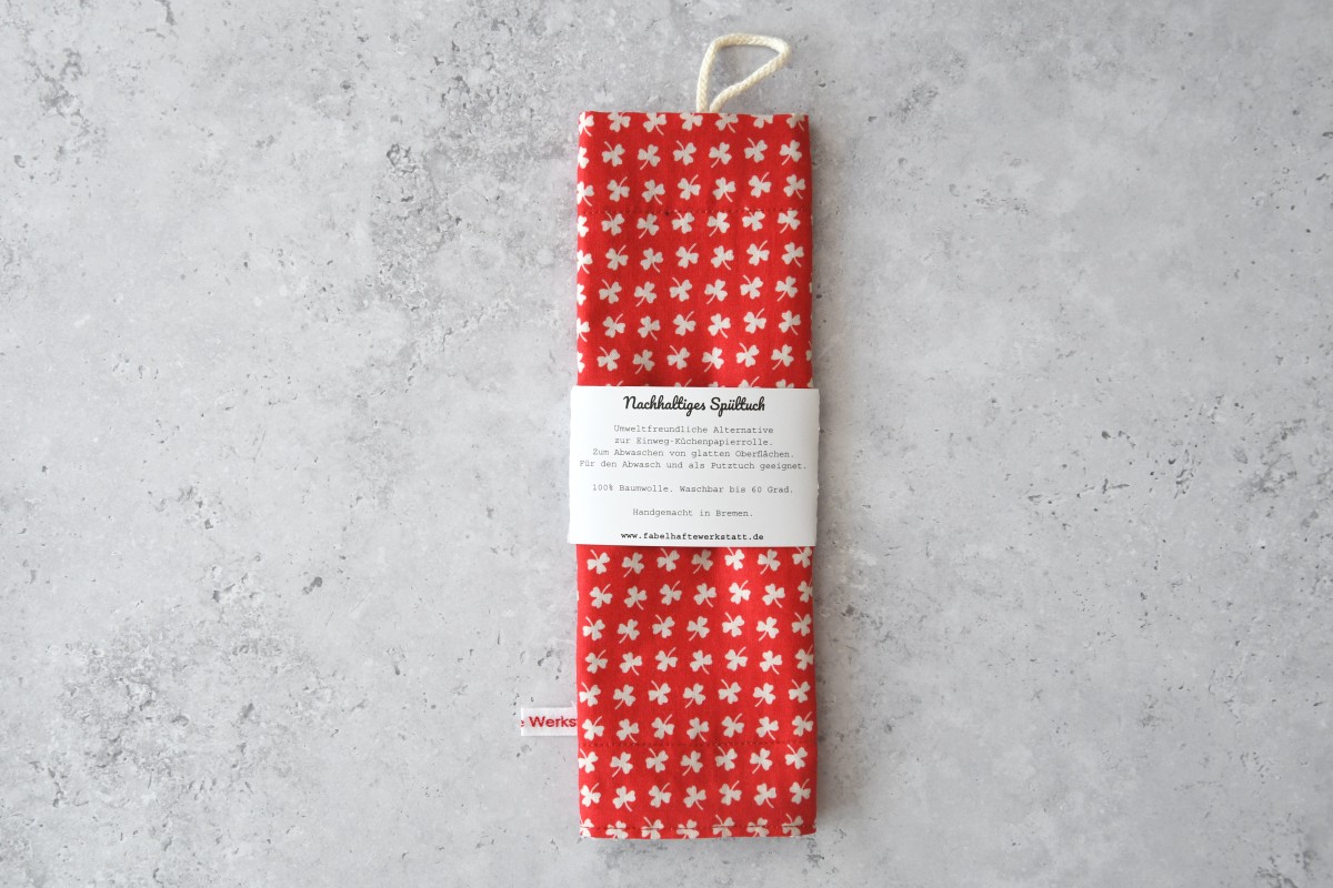 Putztuch, Spültuch aus Baumwolle - "Weiße Kleeblätter auf rot"