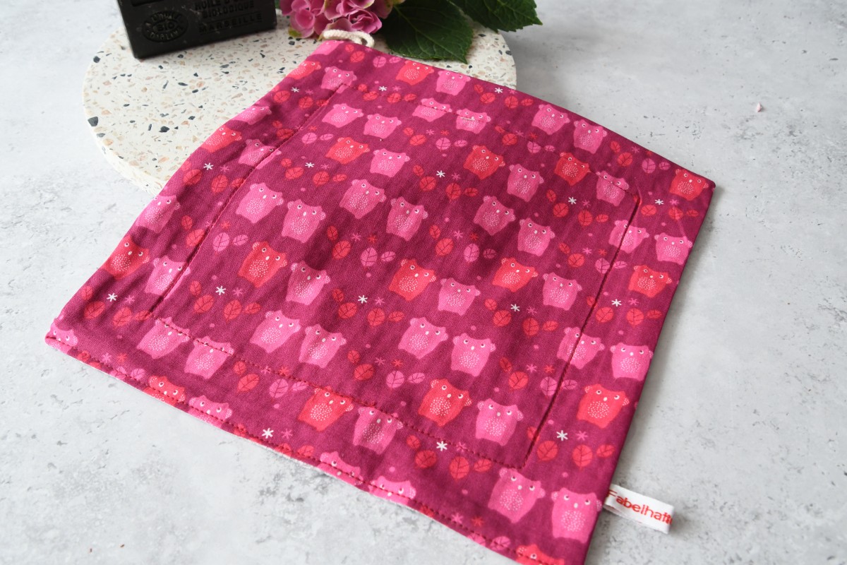 Mobile Preview: Putztuch, Spültuch aus Baumwolle - "Rosa Eulen"