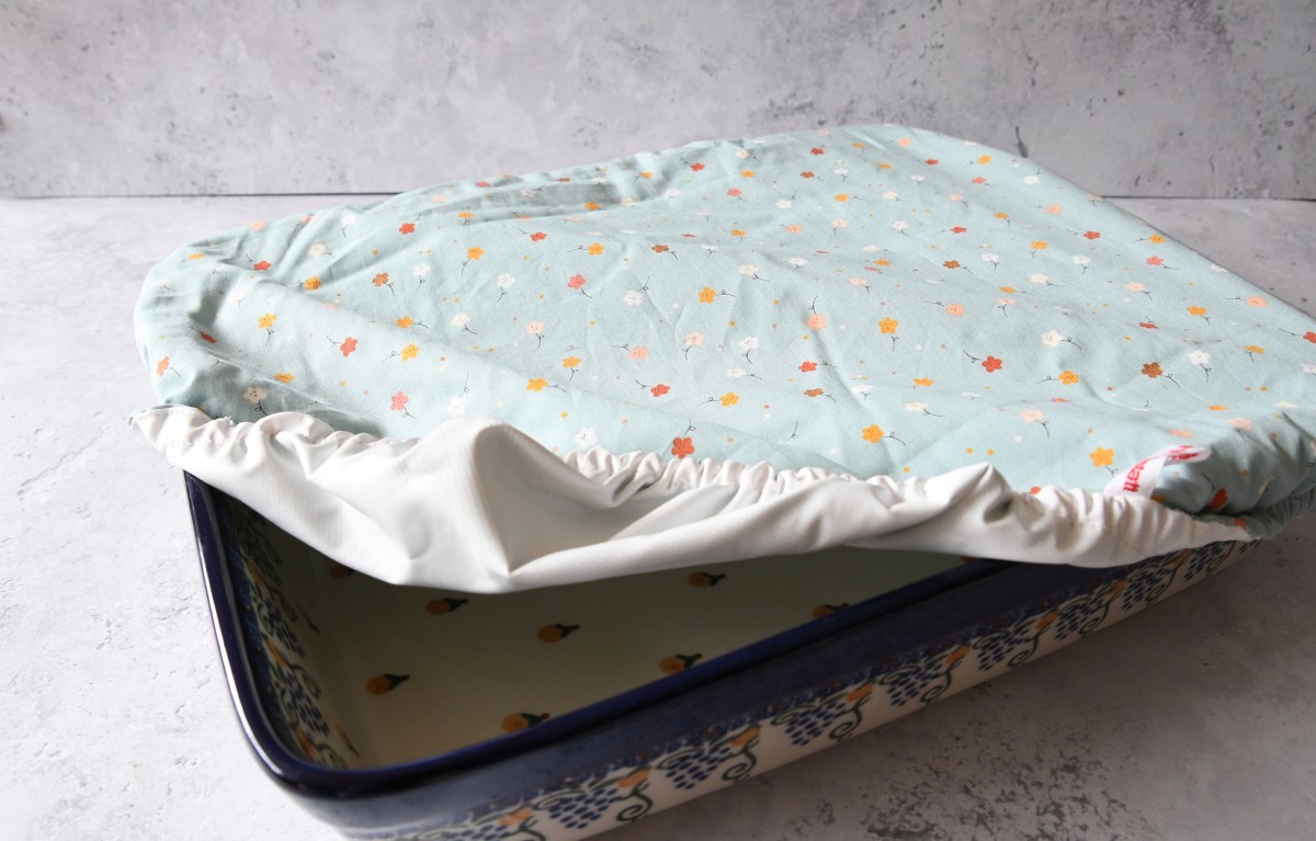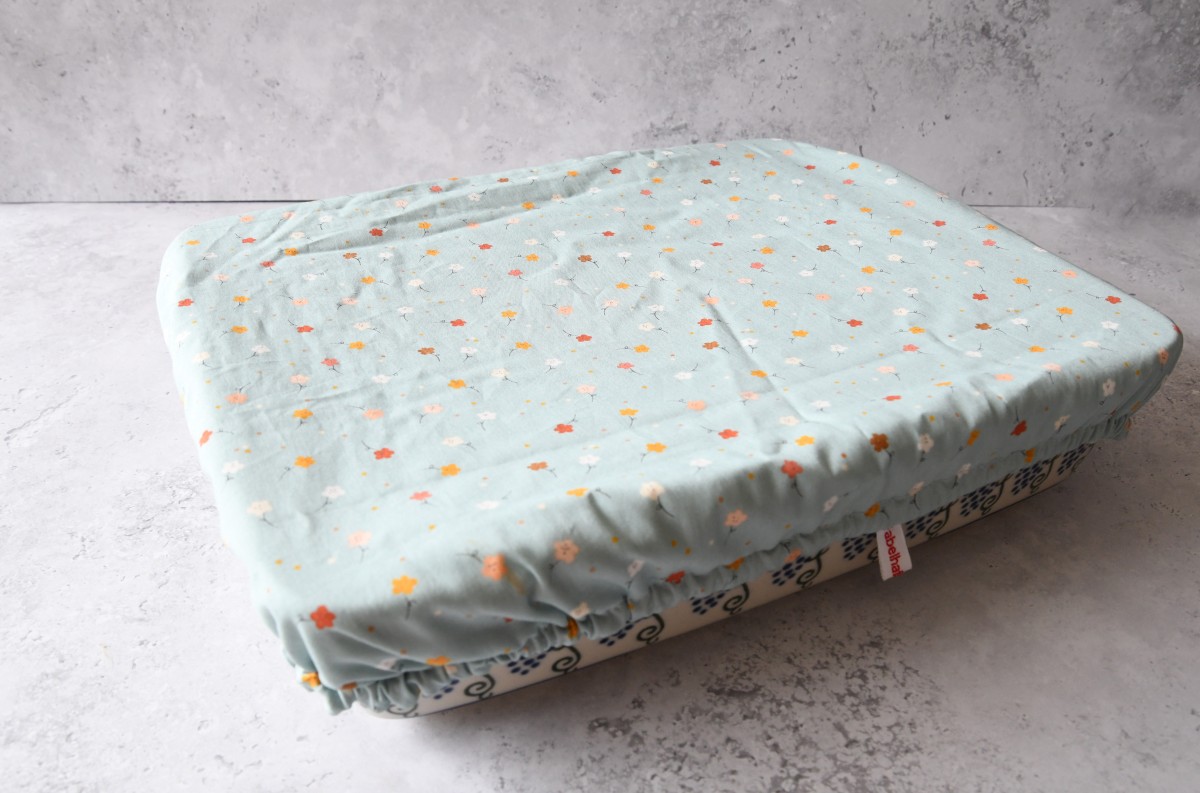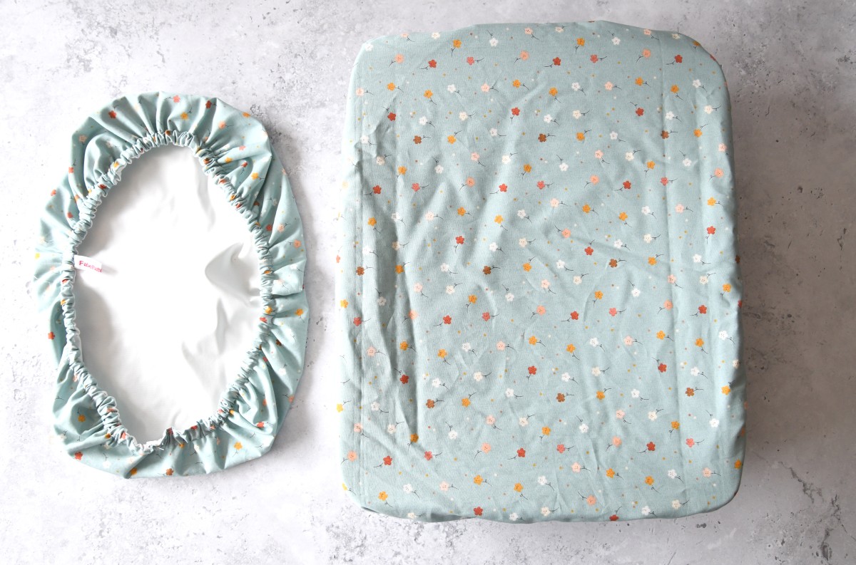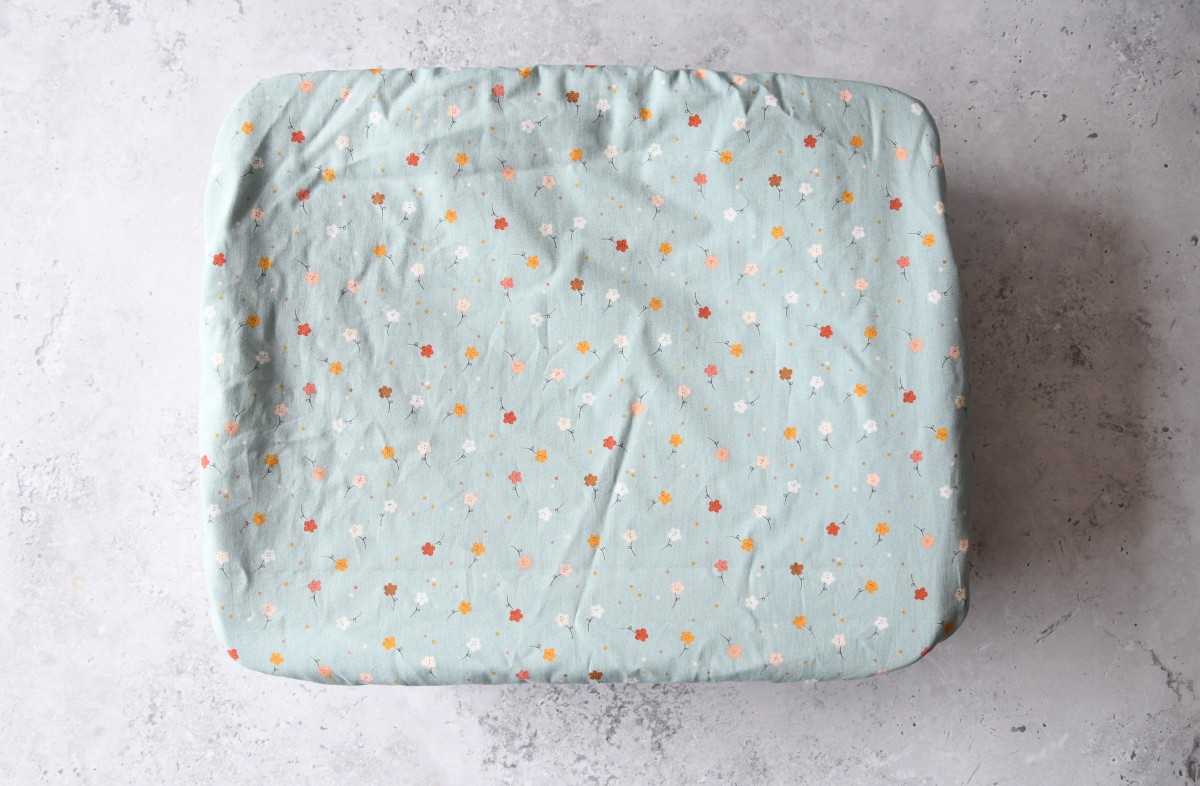 Preview: Rechteckige Abdeckhaube "Kleine Blumen auf hellblau"