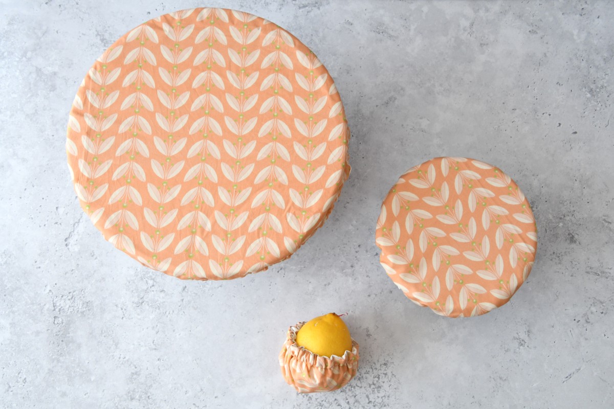 Preview: Schüsselhaube "Blätterranken auf Apricot"