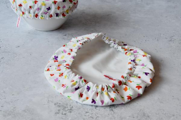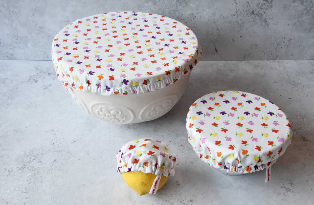Die genähten Schüssel- bzw. Abdeckhauben können durch ihren dehnbaren Gummizug über alle runden Gefäße, Schüsseln, Töpfe und sogar über angeschnittenes Obst wie eine halbe Wassermelone gezogen werden. Übrig gebliebene Lebensmittel werden somit schnell abgedeckt und geschützt, ohne Alu- oder Frischhaltefolie verwenden zu müssen. Die Schüsselhauben sind selbstverständlich waschbar und kühlschranktauglich.
