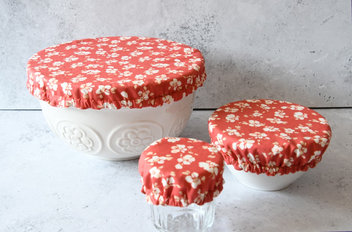 Die genähten Schüssel- bzw. Abdeckhauben können durch ihren dehnbaren Gummizug über alle runden Gefäße, Schüsseln, Töpfe und sogar über angeschnittenes Obst wie eine halbe Wassermelone gezogen werden. Übrig gebliebene Lebensmittel werden somit schnell abgedeckt und geschützt, ohne Alu- oder Frischhaltefolie verwenden zu müssen. Die Schüsselhauben sind selbstverständlich waschbar und kühlschranktauglich.