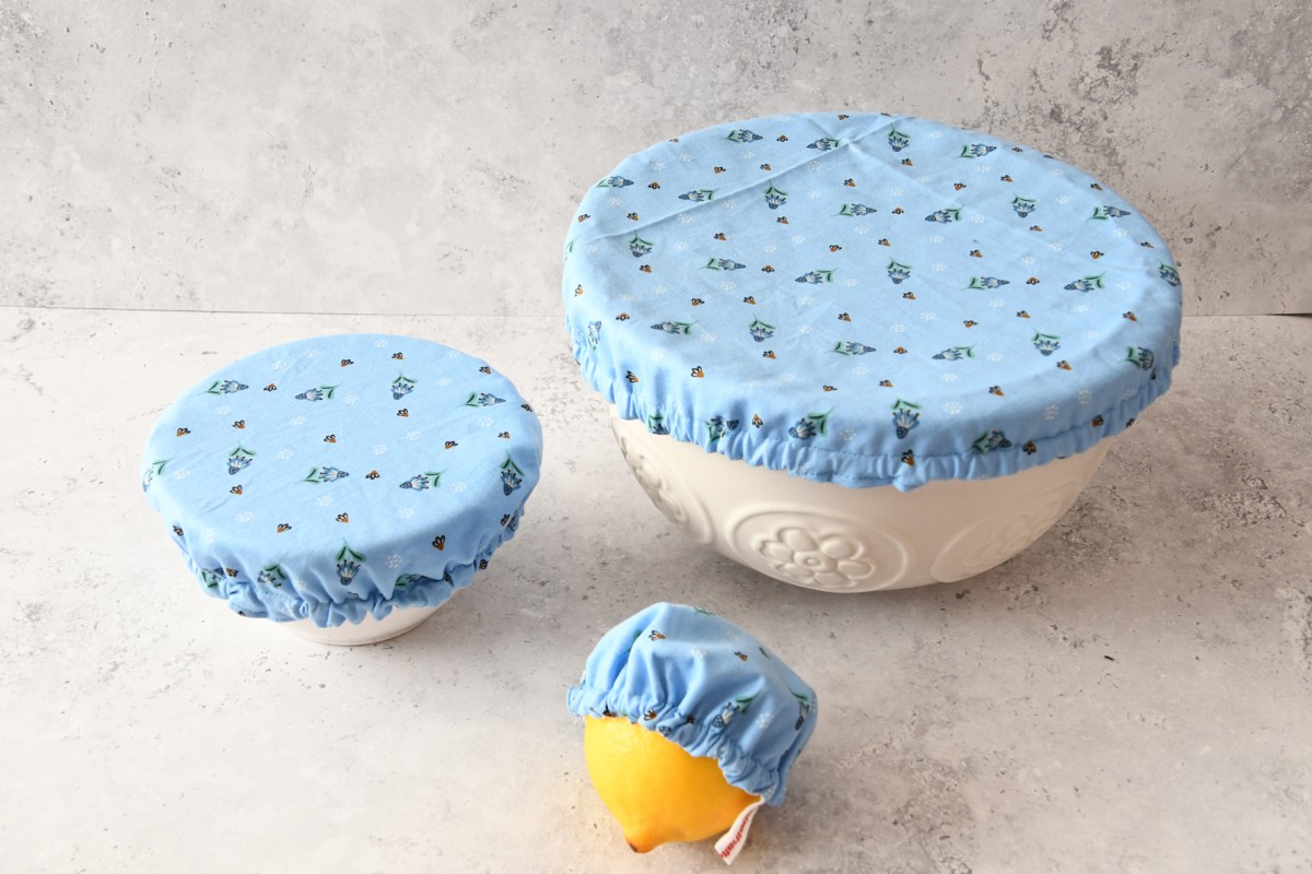 Die genähten Schüssel- bzw. Abdeckhauben können durch ihren dehnbaren Gummizug über alle runden Gefäße, Schüsseln, Töpfe und sogar über angeschnittenes Obst wie eine halbe Wassermelone gezogen werden. Übrig gebliebene Lebensmittel werden somit schnell abgedeckt und geschützt, ohne Alu- oder Frischhaltefolie verwenden zu müssen. Die Schüsselhauben sind selbstverständlich waschbar und kühlschranktauglich.