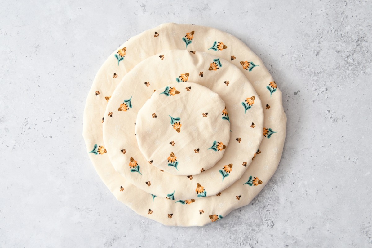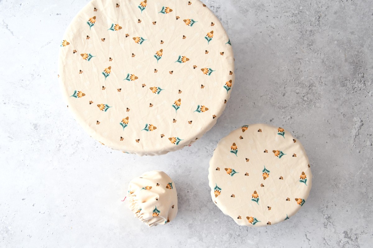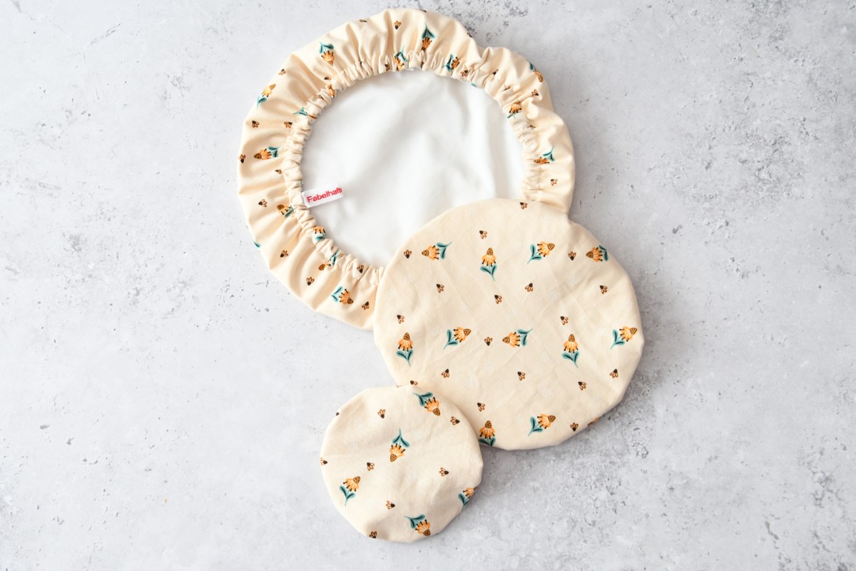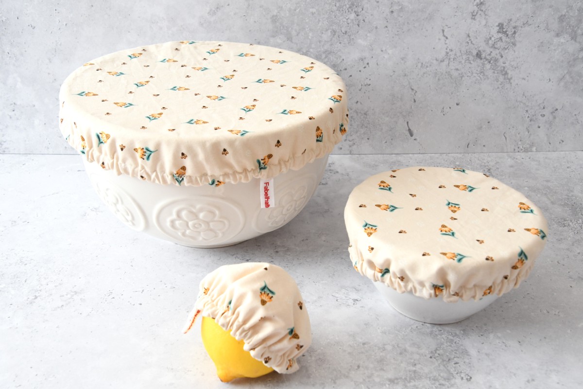 Die genähten Schüssel- bzw. Abdeckhauben können durch ihren dehnbaren Gummizug über alle runden Gefäße, Schüsseln, Töpfe und sogar über angeschnittenes Obst wie eine halbe Wassermelone gezogen werden. Übrig gebliebene Lebensmittel werden somit schnell abgedeckt und geschützt, ohne Alu- oder Frischhaltefolie verwenden zu müssen. Die Schüsselhauben sind selbstverständlich waschbar und kühlschranktauglich.