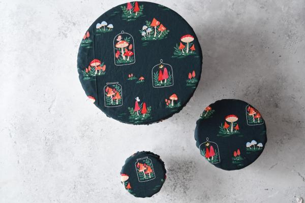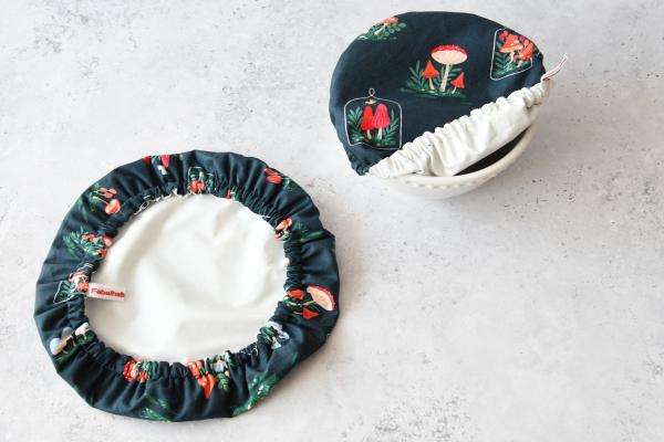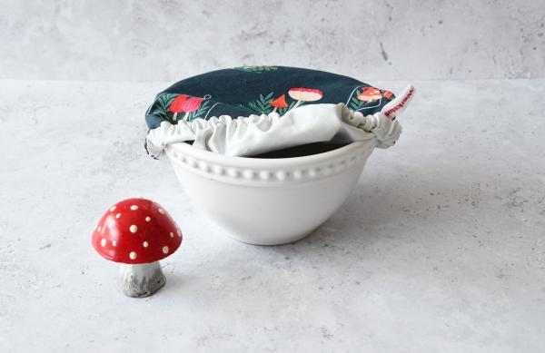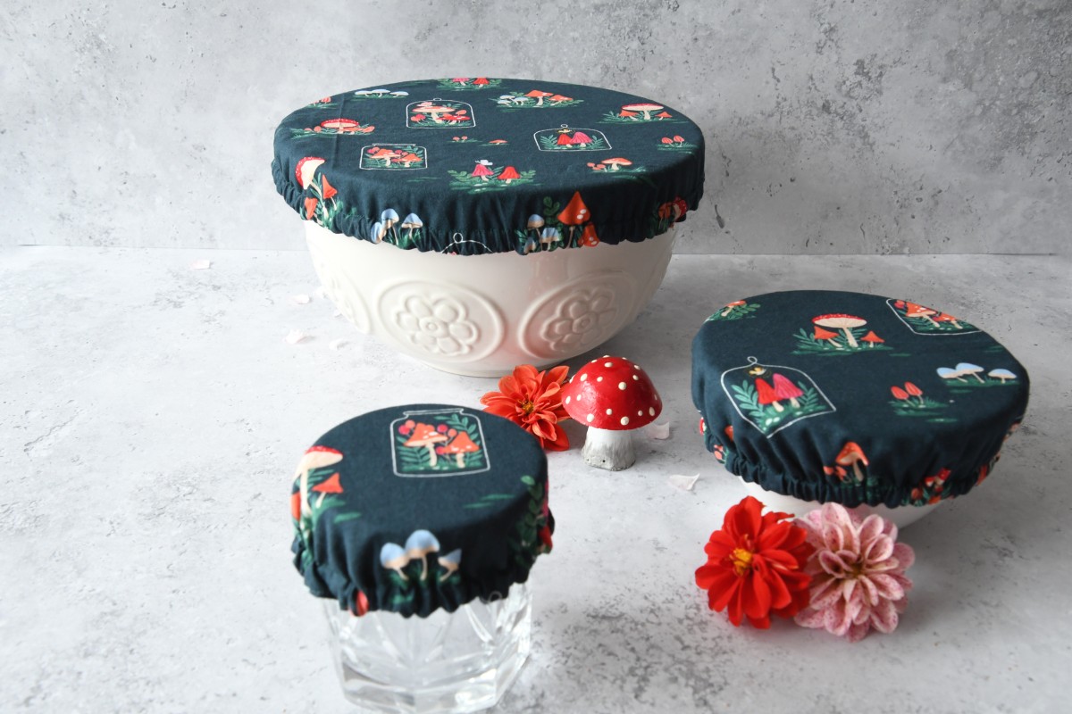 Die genähten Schüssel- bzw. Abdeckhauben können durch ihren dehnbaren Gummizug über alle runden Gefäße, Schüsseln, Töpfe und sogar über angeschnittenes Obst wie eine halbe Wassermelone gezogen werden. Übrig gebliebene Lebensmittel werden somit schnell abgedeckt und geschützt, ohne Alu- oder Frischhaltefolie verwenden zu müssen. Die Schüsselhauben sind selbstverständlich waschbar und kühlschranktauglich.