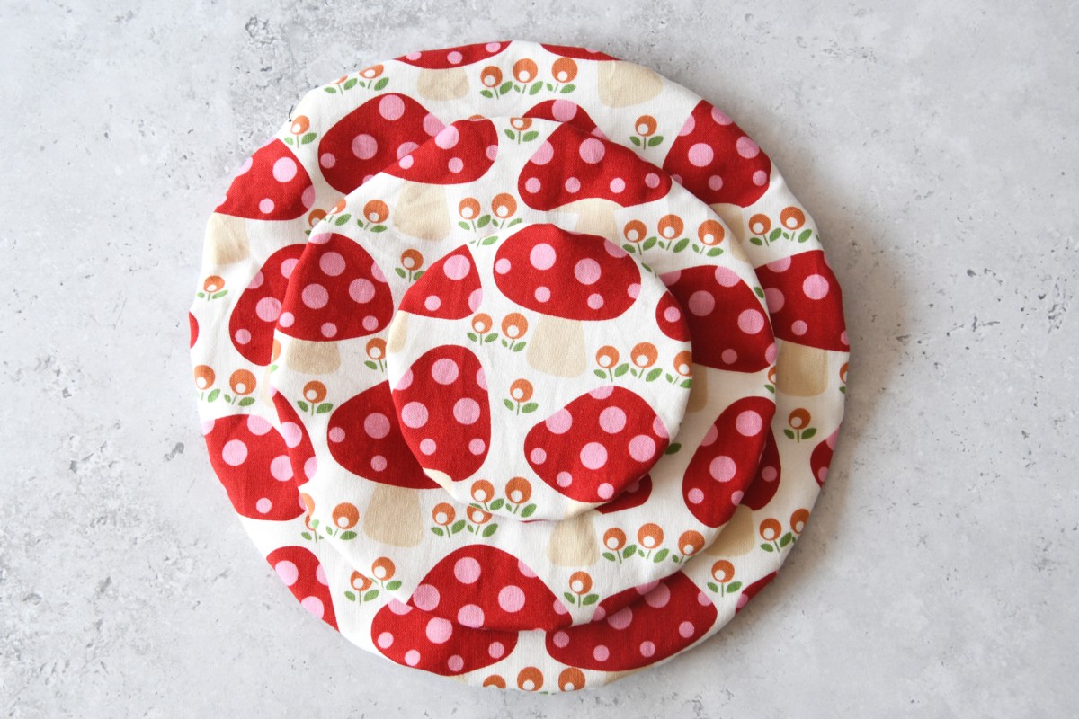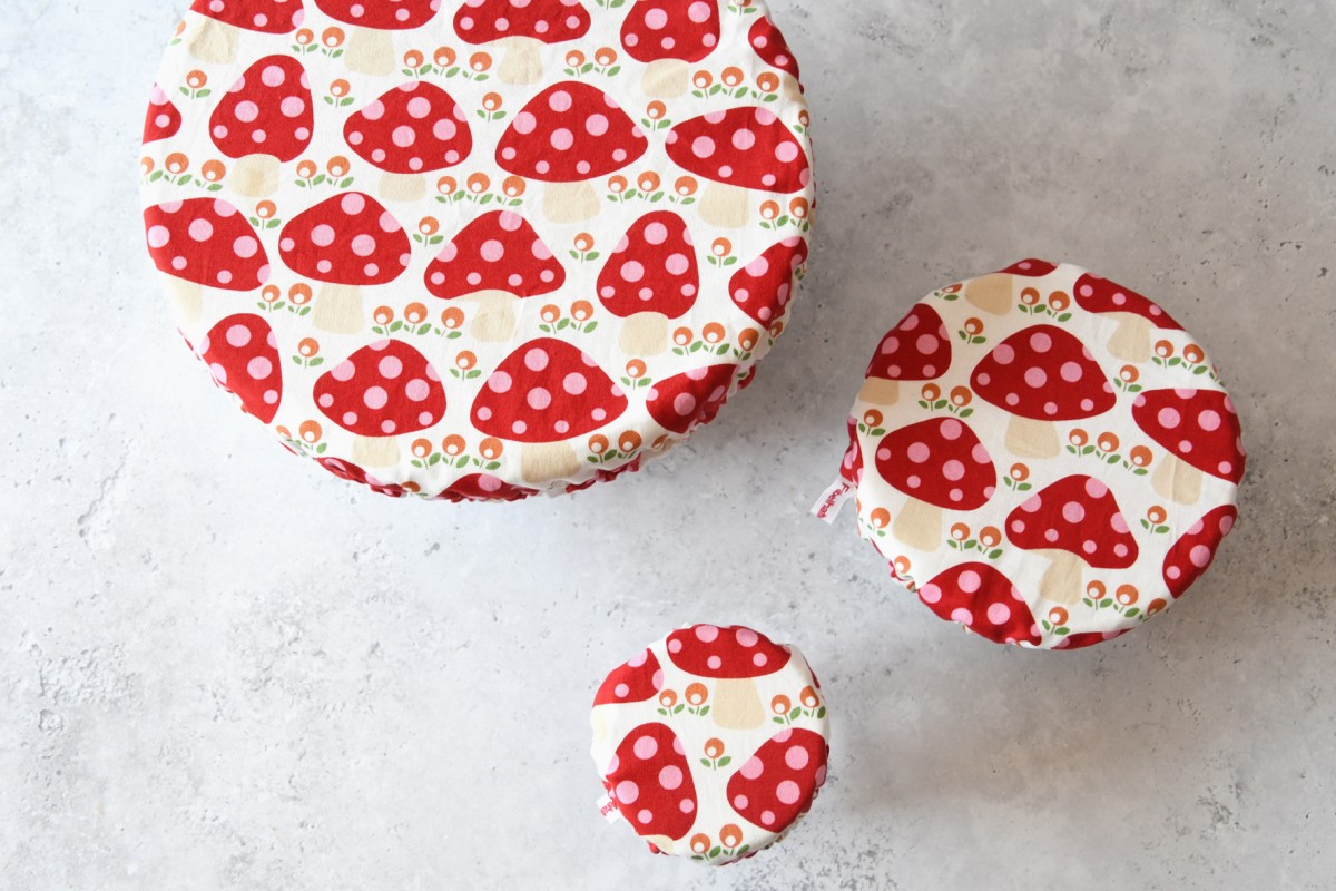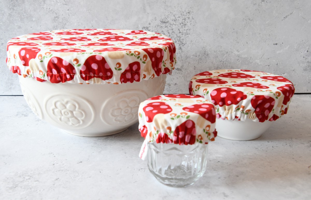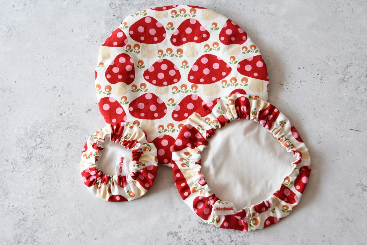 Die genähten Schüssel- bzw. Abdeckhauben können durch ihren dehnbaren Gummizug über alle runden Gefäße, Schüsseln, Töpfe und sogar über angeschnittenes Obst wie eine halbe Wassermelone gezogen werden. Übrig gebliebene Lebensmittel werden somit schnell abgedeckt und geschützt, ohne Alu- oder Frischhaltefolie verwenden zu müssen. Die Schüsselhauben sind selbstverständlich waschbar und kühlschranktauglich.