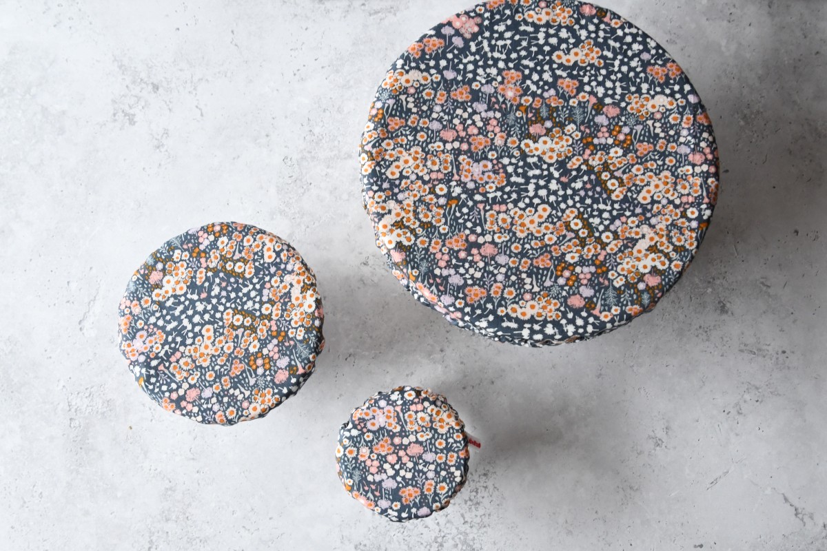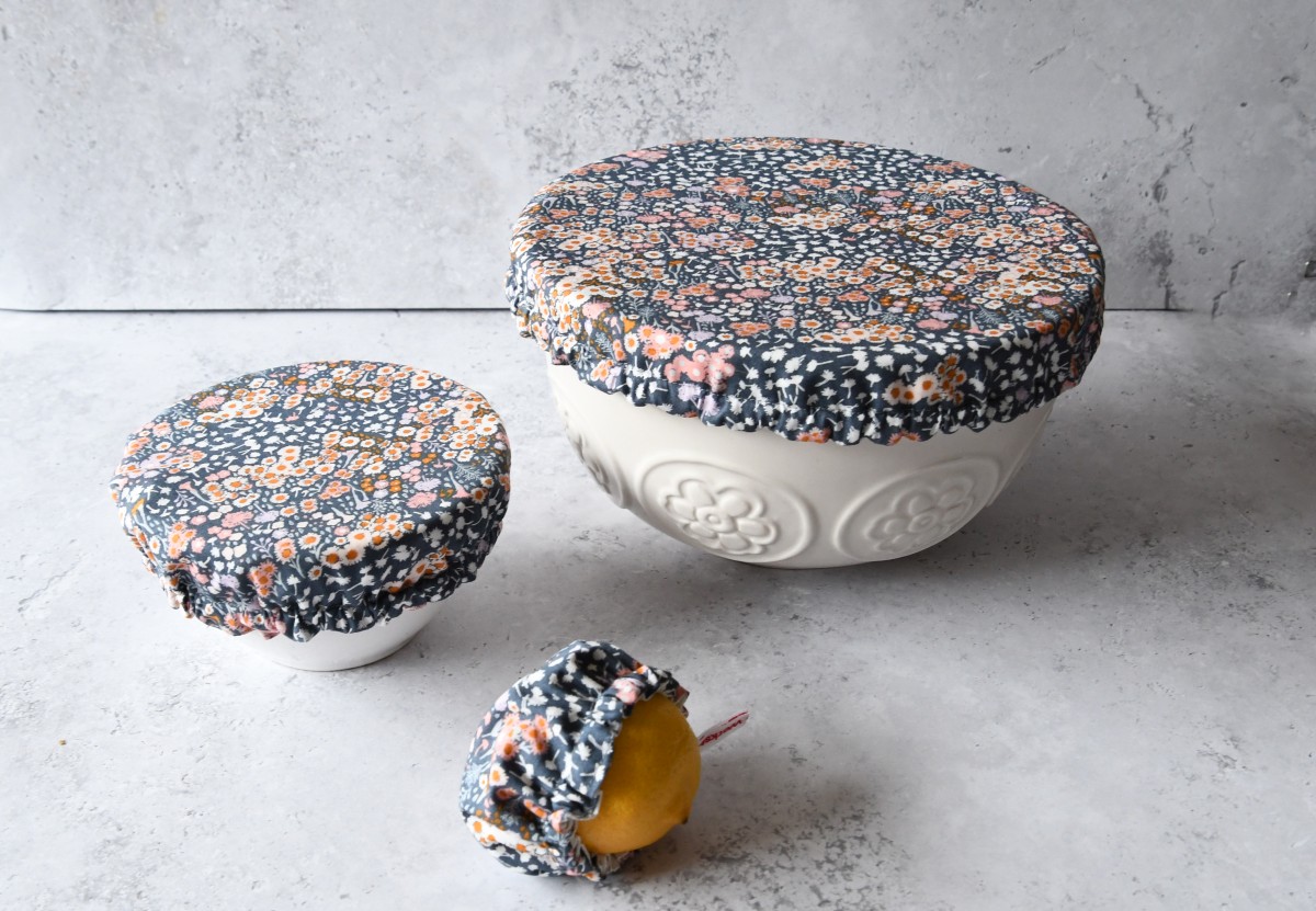 Die genähten Schüssel- bzw. Abdeckhauben können durch ihren dehnbaren Gummizug über alle runden Gefäße, Schüsseln, Töpfe und sogar über angeschnittenes Obst wie eine halbe Wassermelone gezogen werden. Übrig gebliebene Lebensmittel werden somit schnell abgedeckt und geschützt, ohne Alu- oder Frischhaltefolie verwenden zu müssen. Die Schüsselhauben sind selbstverständlich waschbar und kühlschranktauglich.