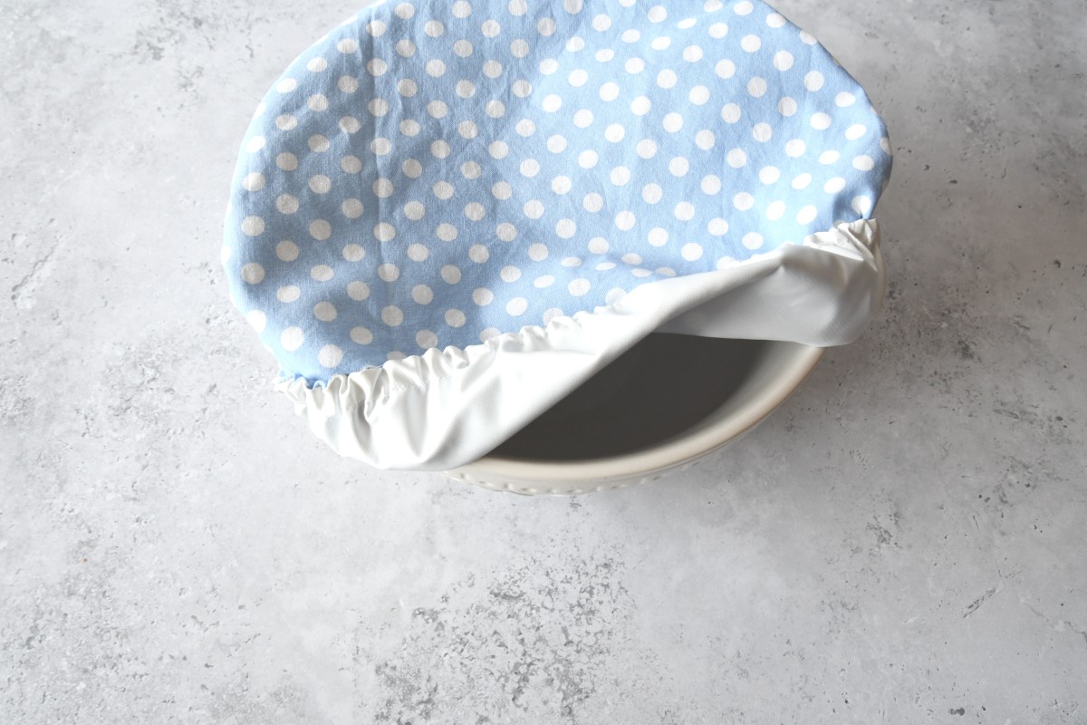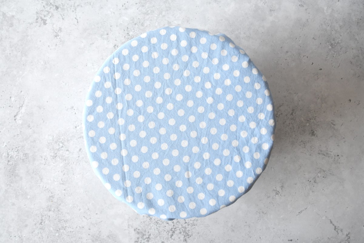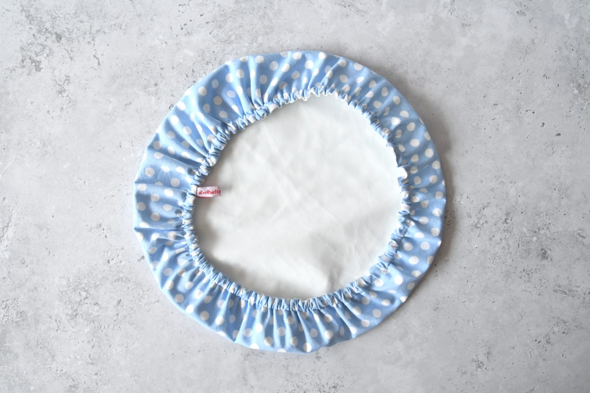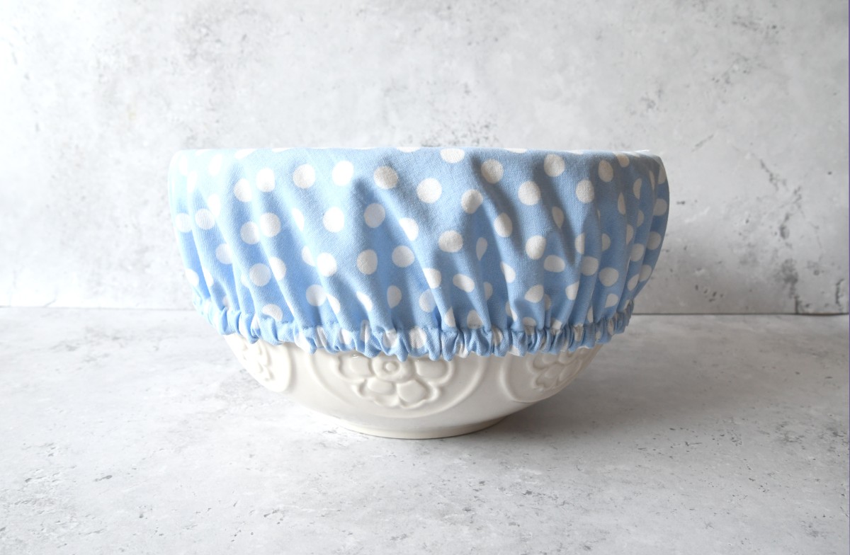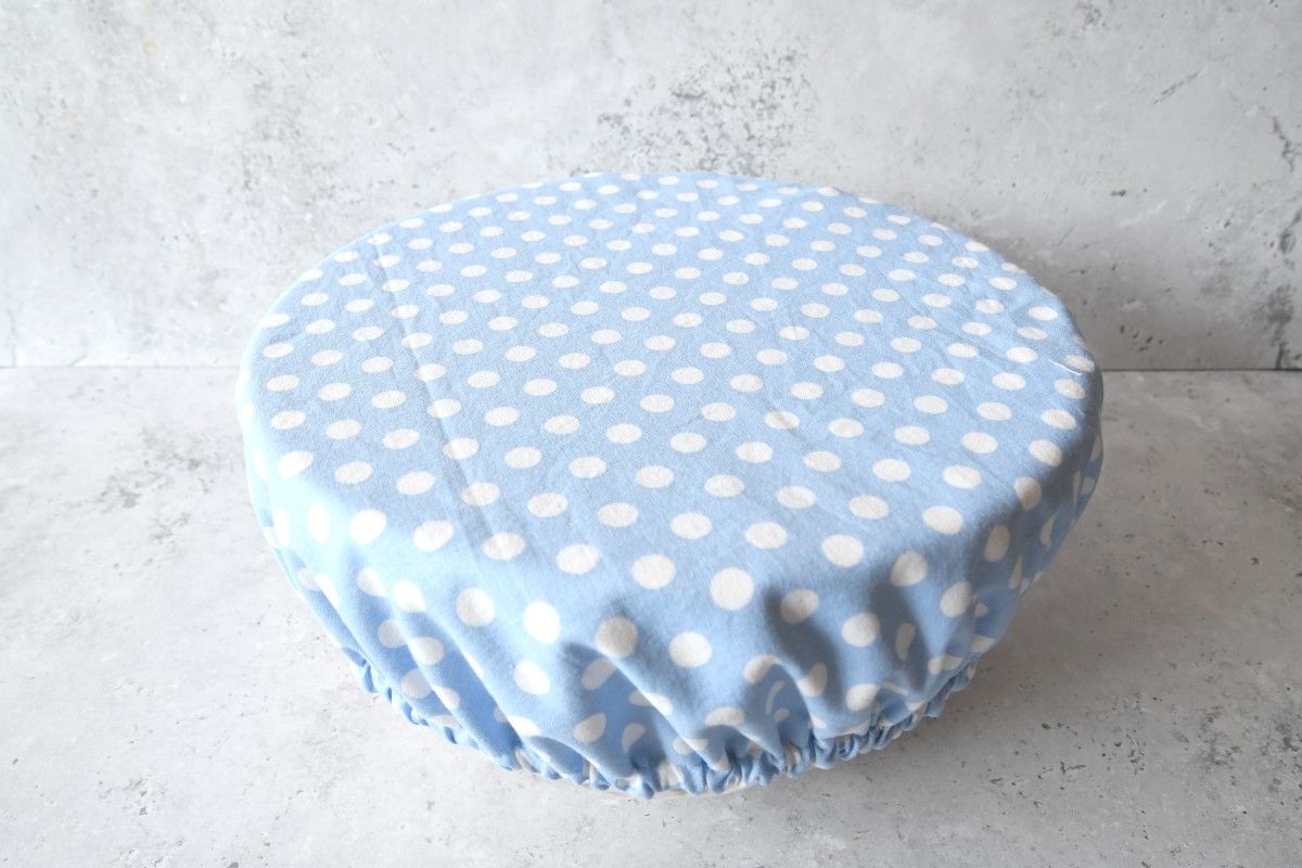 Schüsselhaube XL "Weiße Punkte auf hellblau"