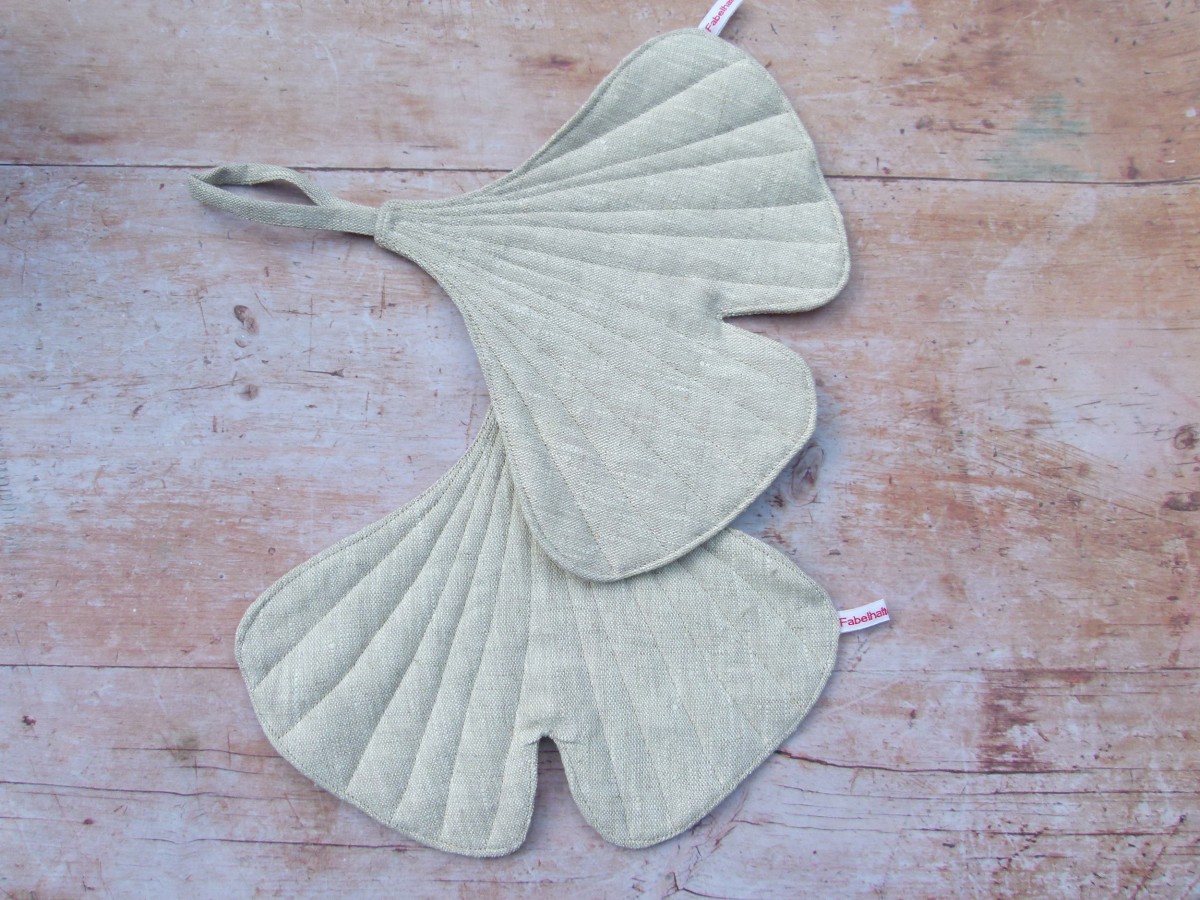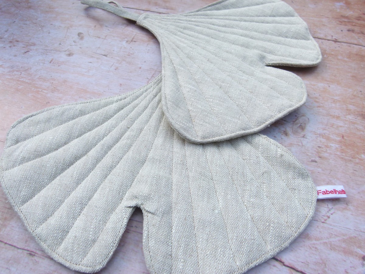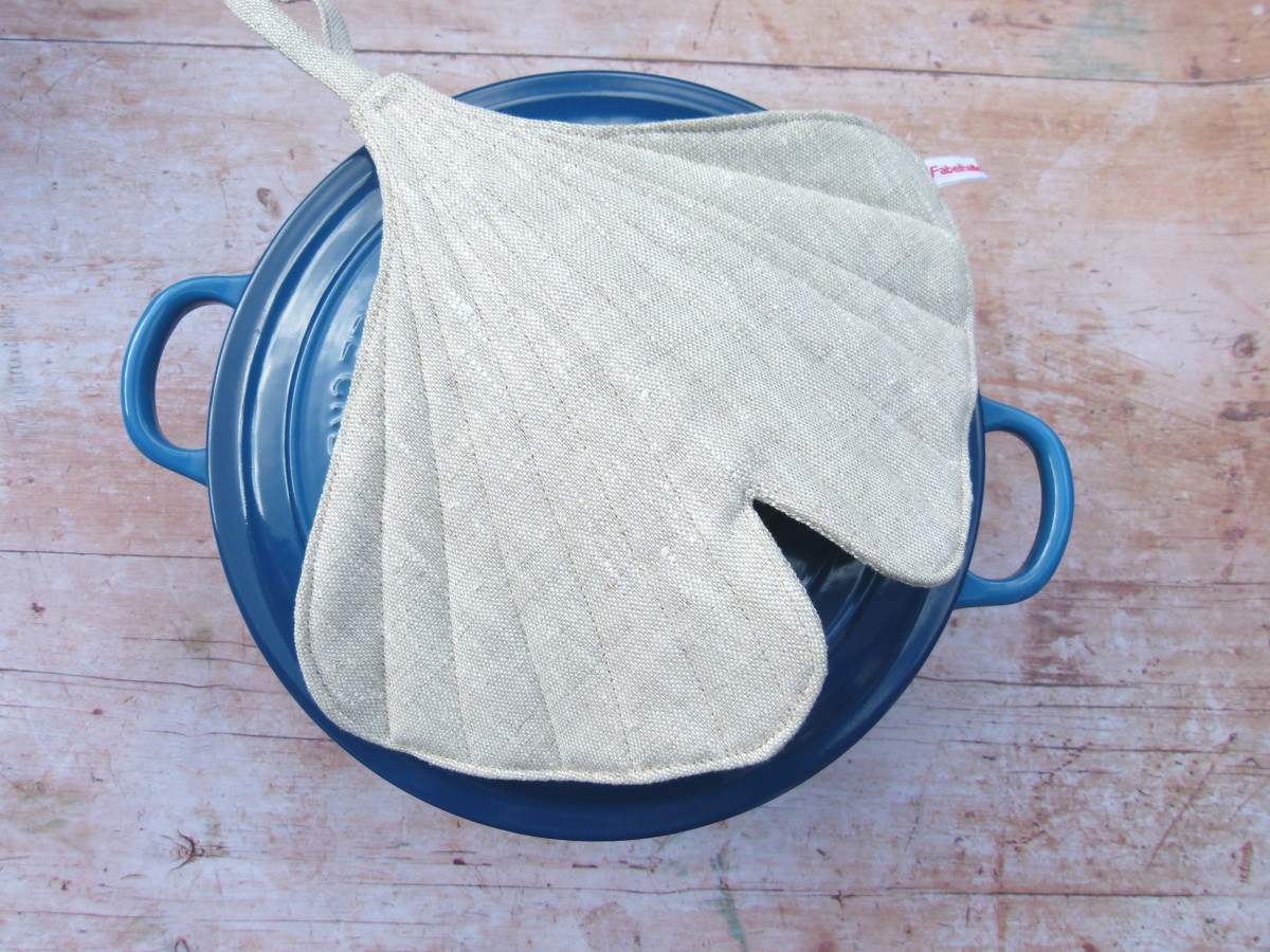 Außen bestehen sie aus 100 % Leinen und innen sind sie mit Volumenvlies und Thermolam doppelt gefüttert und schützen damit deine Hände zuverlässig vor Hitze und Verbrennungen. Durch die kleine Schlaufe kannst du die Topflappen ganz einfach aufhängen.