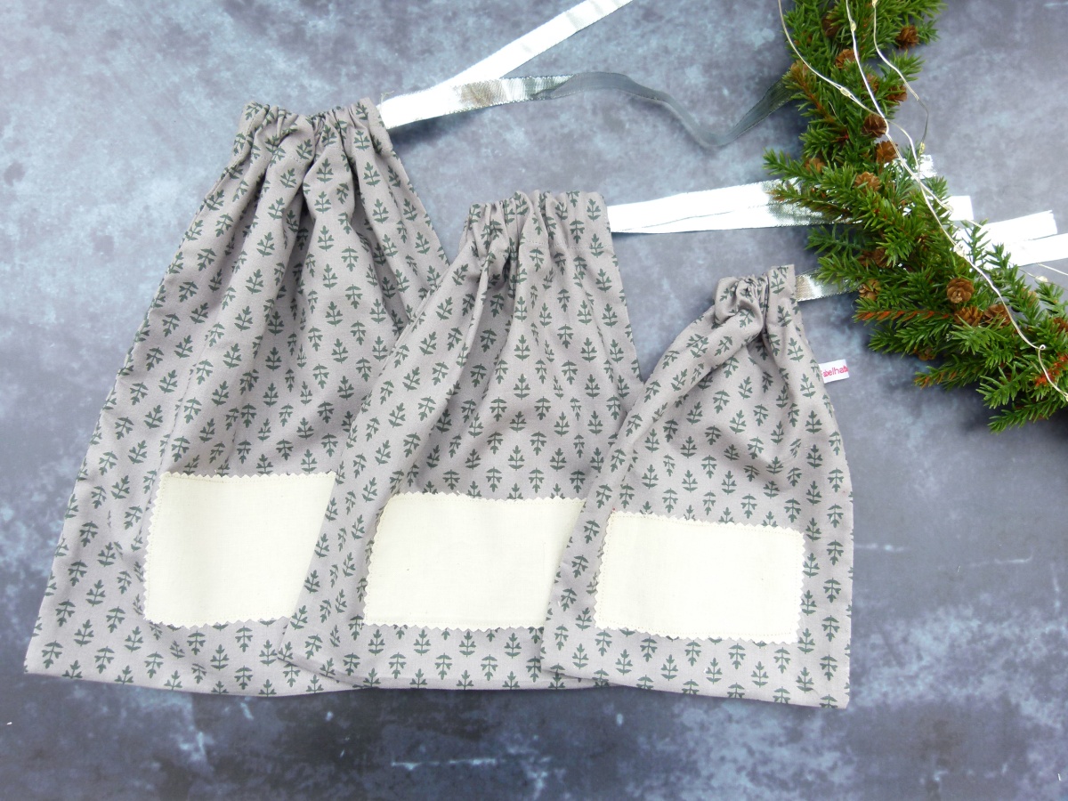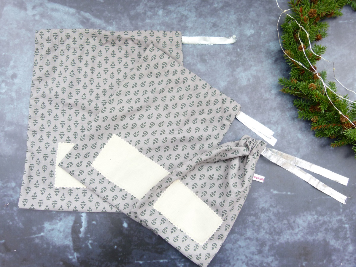 Mobile Preview: Geschenkbeutel (Grüne Blätter auf grau)
