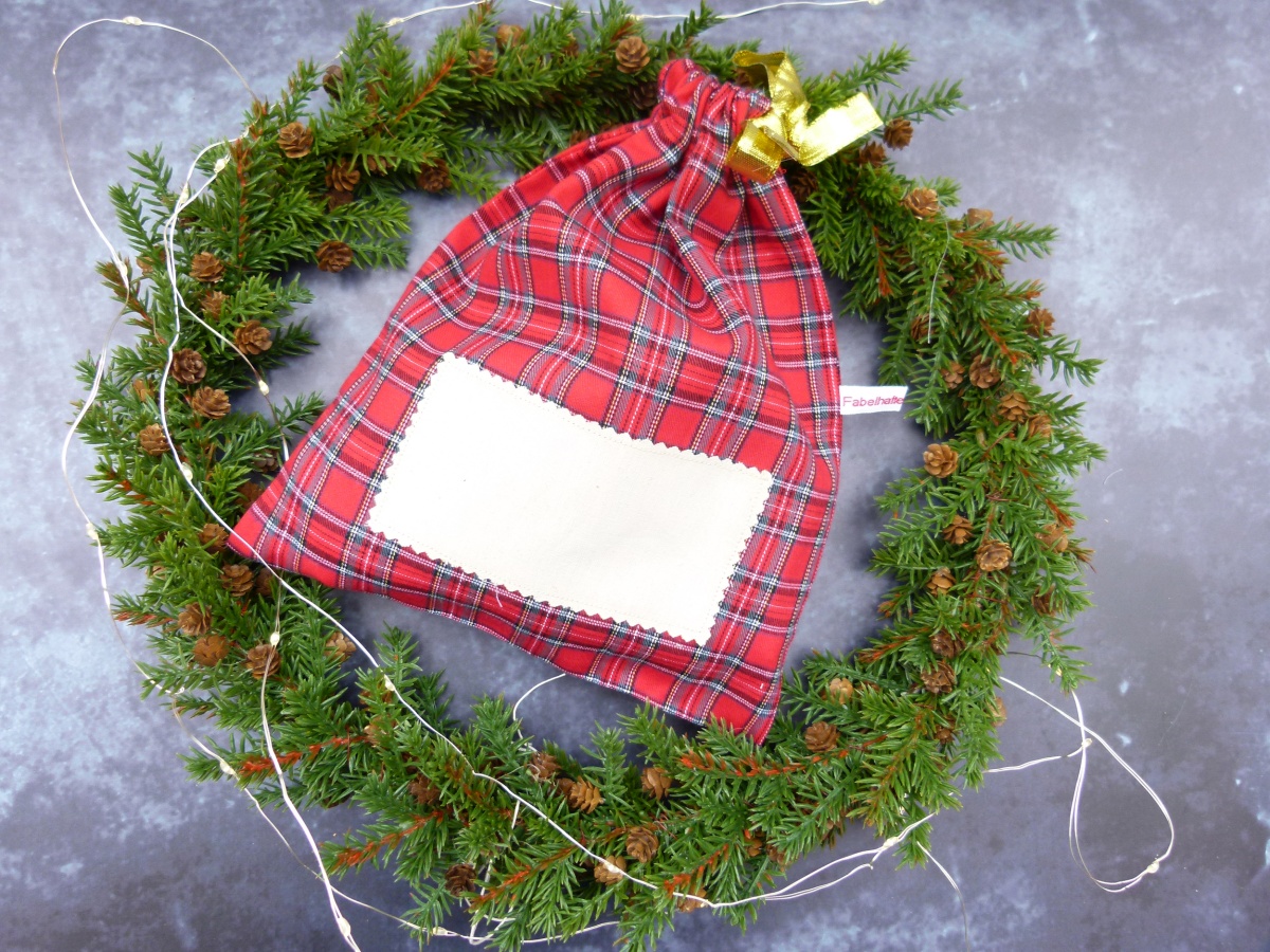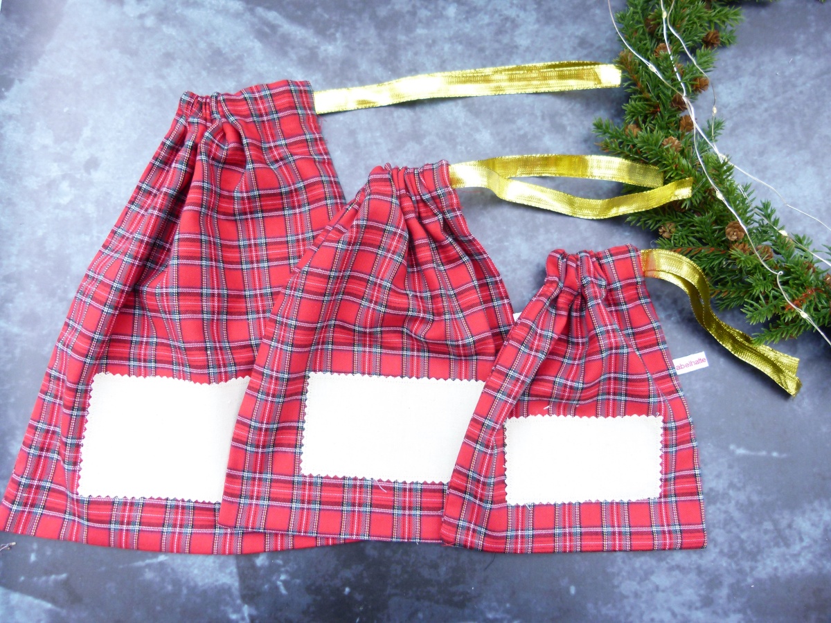 Preview: Geschenkbeutel (Karomuster auf rot)