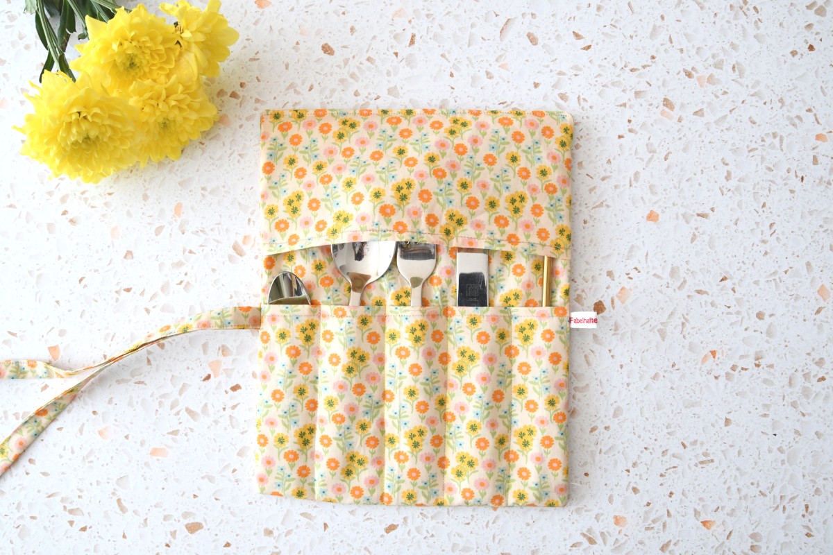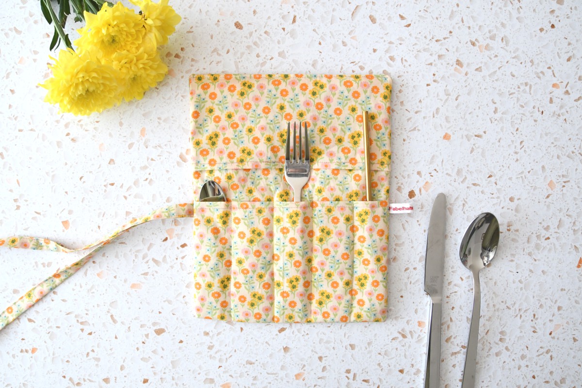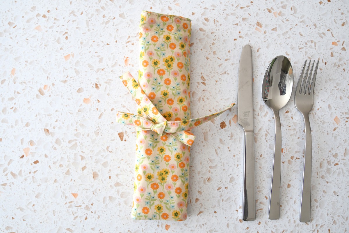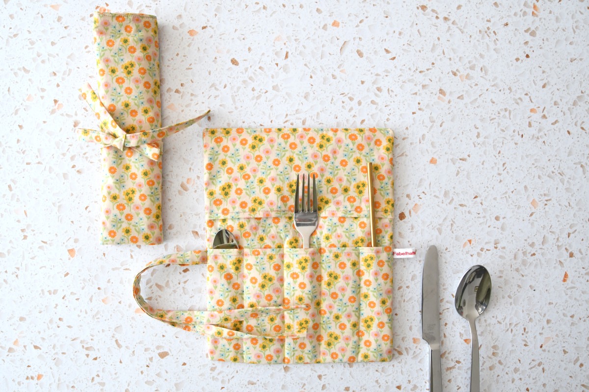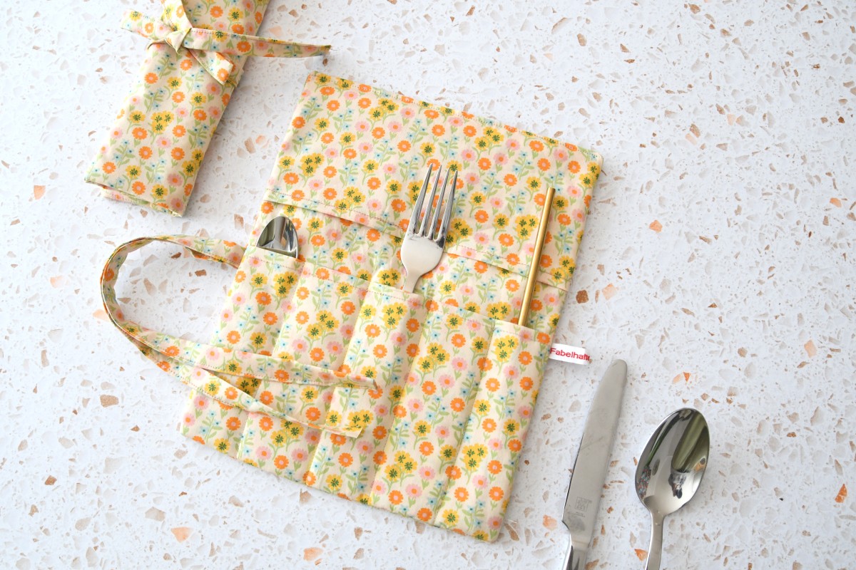 Besteckrolle "Bunte Wiese auf hellgelb"