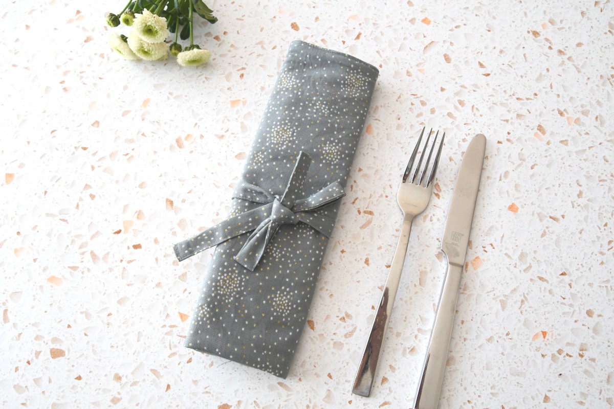 Mobile Preview: Besteckrolle "Glitter auf grau"