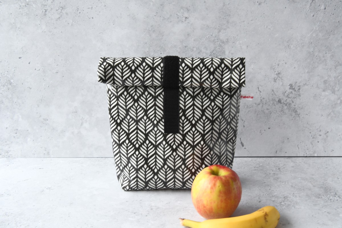 Dieser Lunchbag ist super praktisch um Pausenbrote oder klein geschnittenes Obst & Gemüse für unterwegs mitzunehmen und eine tolle Alternative zu Plastikbeuteln oder -brotdosen. Das Innenfutter besteht aus einem wasserfesten Stoff, der speziell für die Aufbewahrung von Lebensmitteln entwickelt wurde und frei von Schadstoffen wie BPA, Blei und Phthalaten ist. Belegte Brote & Co. können somit direkt ohne weitere Verpackung darin mitgenommen werden. Außen besteht der Lunchbag aus hochwertiger, beschichteter Baumwolle, die wasser- und schmutzabweisend ist. Dank rollbarem Klettverschlusssystem ist der Lunchbag einfach, schnell und sicher verschließbar. Sobald der Proviant verzehrt wurde, lässt sich der Lunchbag zusammenfalten und platzsparend in der Tasche verstauen.