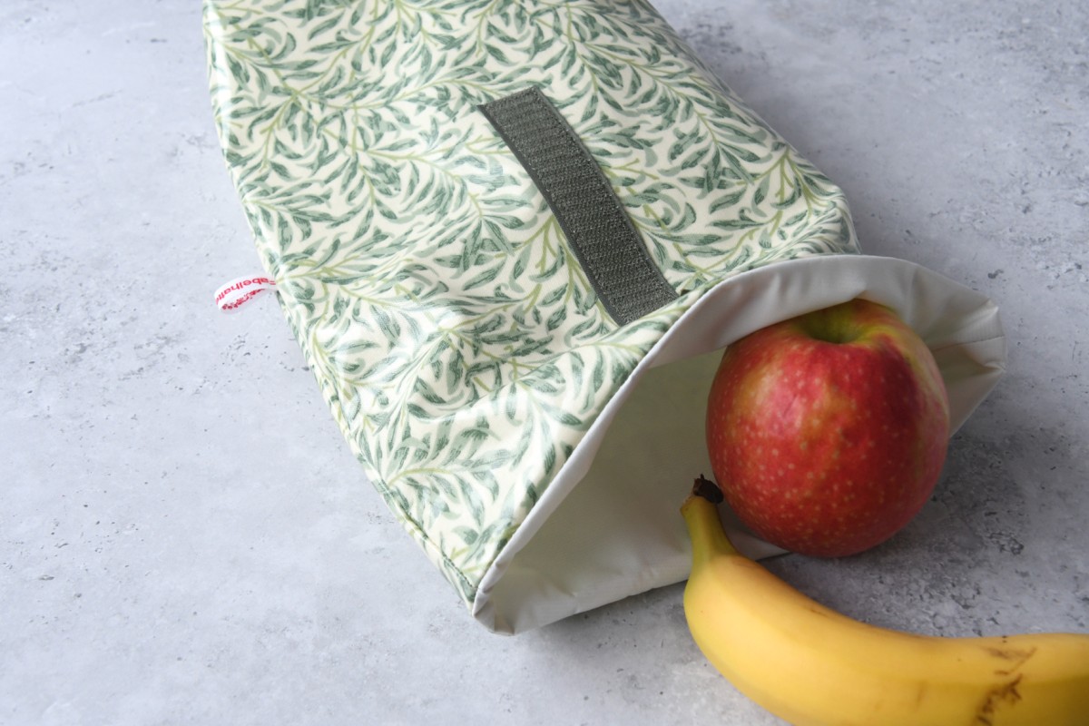 Dieser Lunchbag ist super praktisch um Pausenbrote oder klein geschnittenes Obst & Gemüse für unterwegs mitzunehmen und eine tolle Alternative zu Plastikbeuteln oder -brotdosen. Das Innenfutter besteht aus einem wasserfesten Stoff, der speziell für die Aufbewahrung von Lebensmitteln entwickelt wurde und frei von Schadstoffen wie BPA, Blei und Phthalaten ist. Belegte Brote & Co. können somit direkt ohne weitere Verpackung darin mitgenommen werden. Außen besteht der Lunchbag aus hochwertiger, beschichteter Baumwolle, die wasser- und schmutzabweisend ist. Dank rollbarem Klettverschlusssystem ist der Lunchbag einfach, schnell und sicher verschließbar. Sobald der Proviant verzehrt wurde, lässt sich der Lunchbag zusammenfalten und platzsparend in der Tasche verstauen.